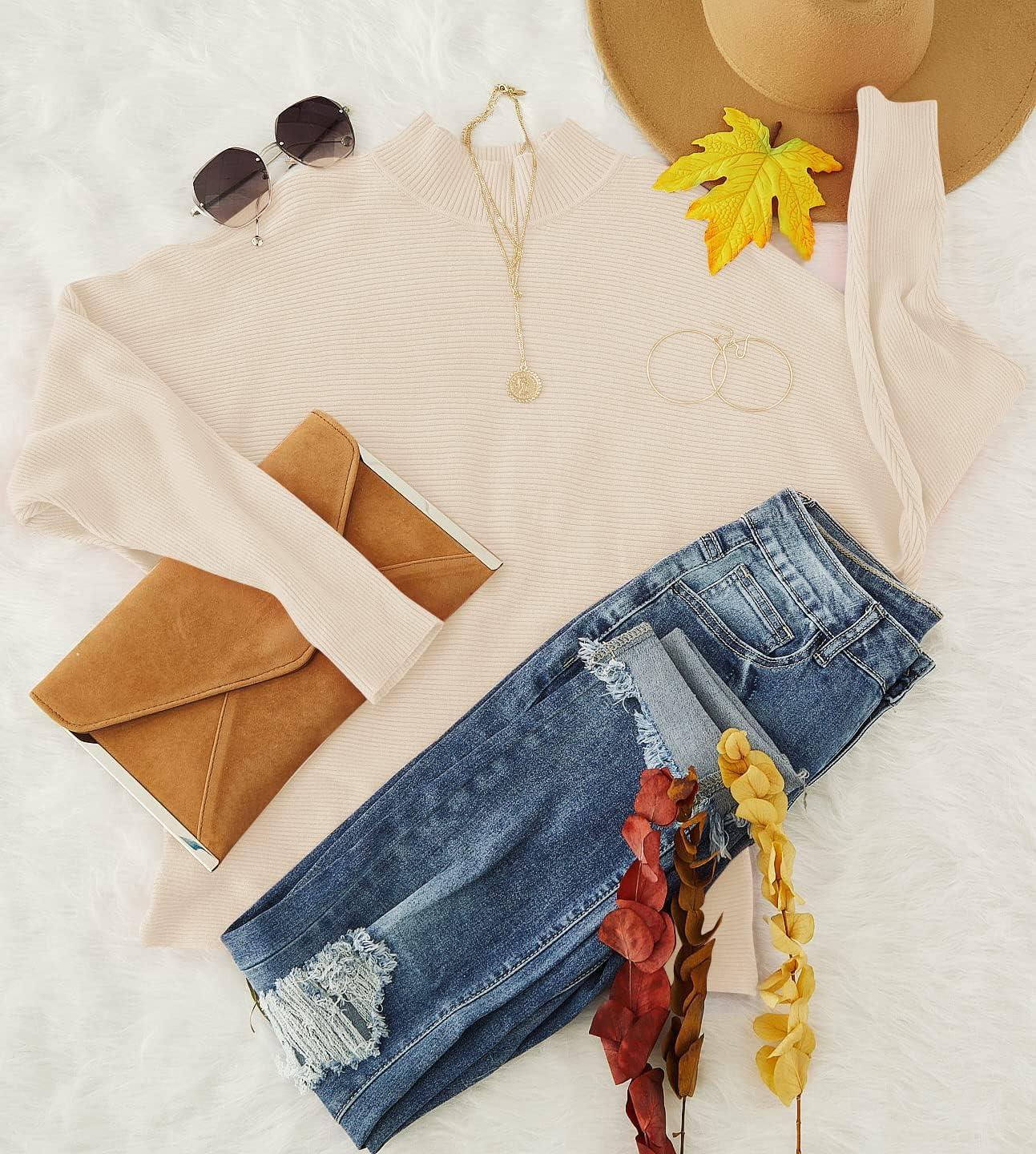 ZESICA Women’s Fall 2025 Turtleneck Batwing Long Sleeve Ribbed Knit Casual Soft Pullover Sweater Jumper Top(Apricot)