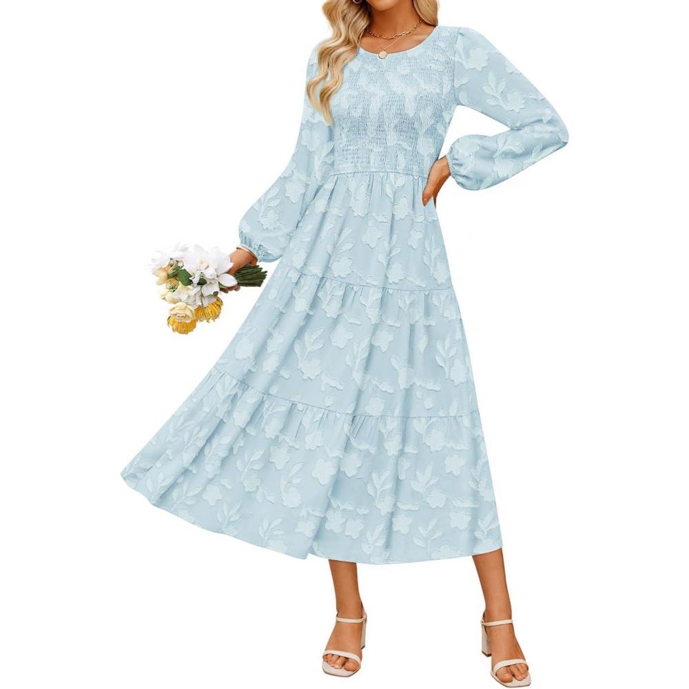 Get a free gift with your purchase of ZESICA Women’s Fall Boho Floral Midi Dress 2025 Casual Long Sleeve Crewneck Flowy Wedding Guest Long Dresses(Blue). Limited quantities available!