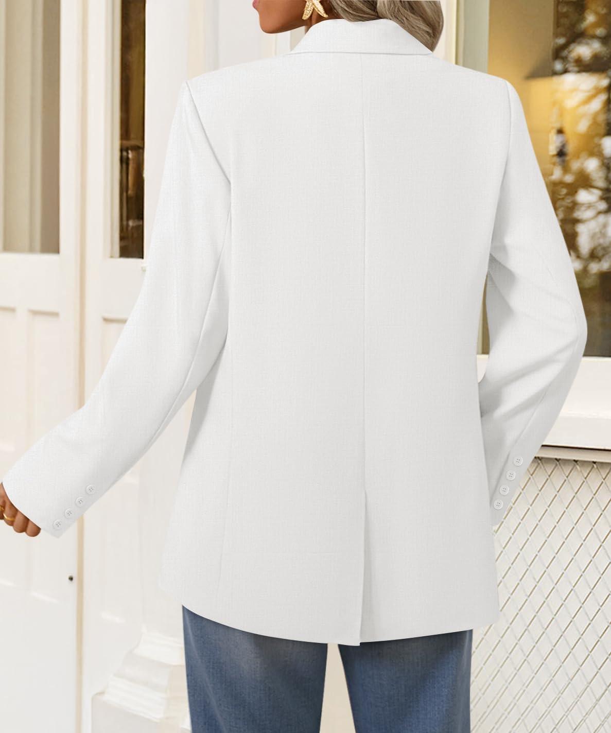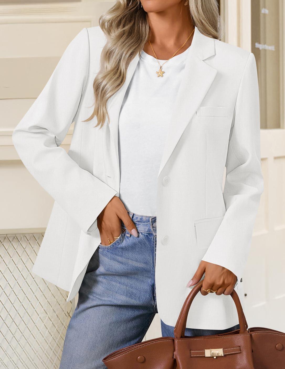 ZESICA Women’s Fall Business Casual Blazers 2025 Long Sleeve Lapel Open Front Button Work Blazer Jackets with Pockets(White)
