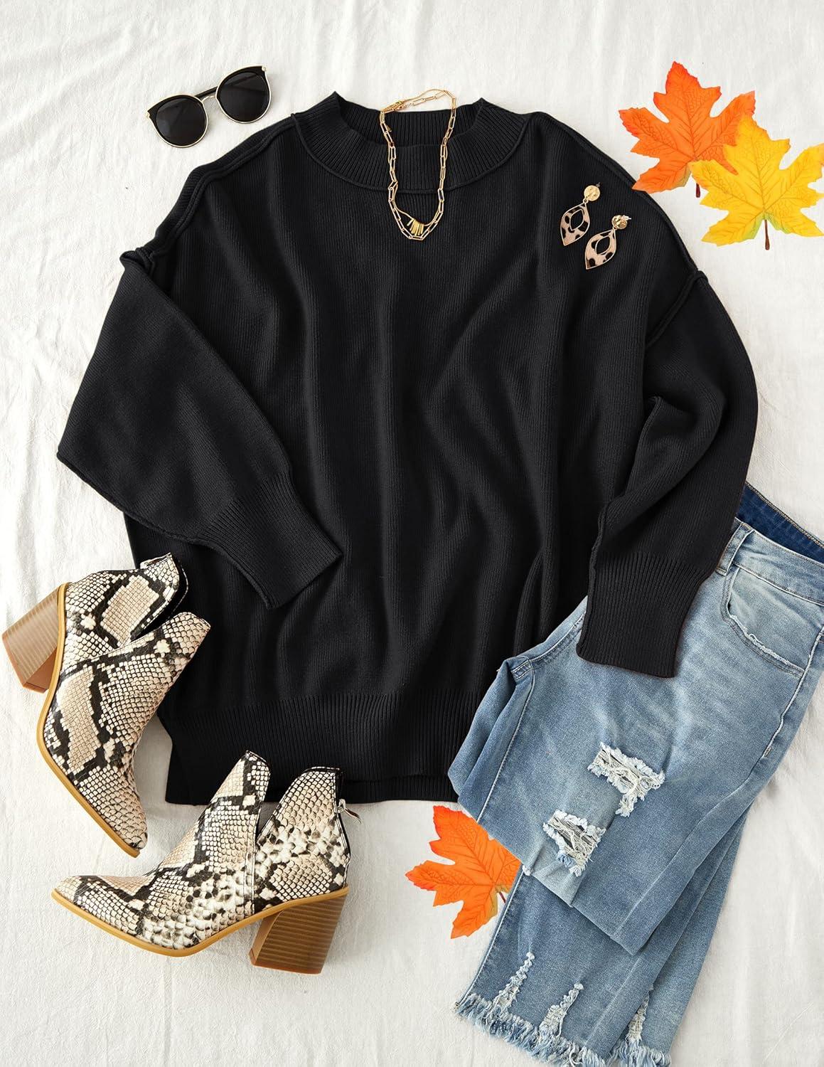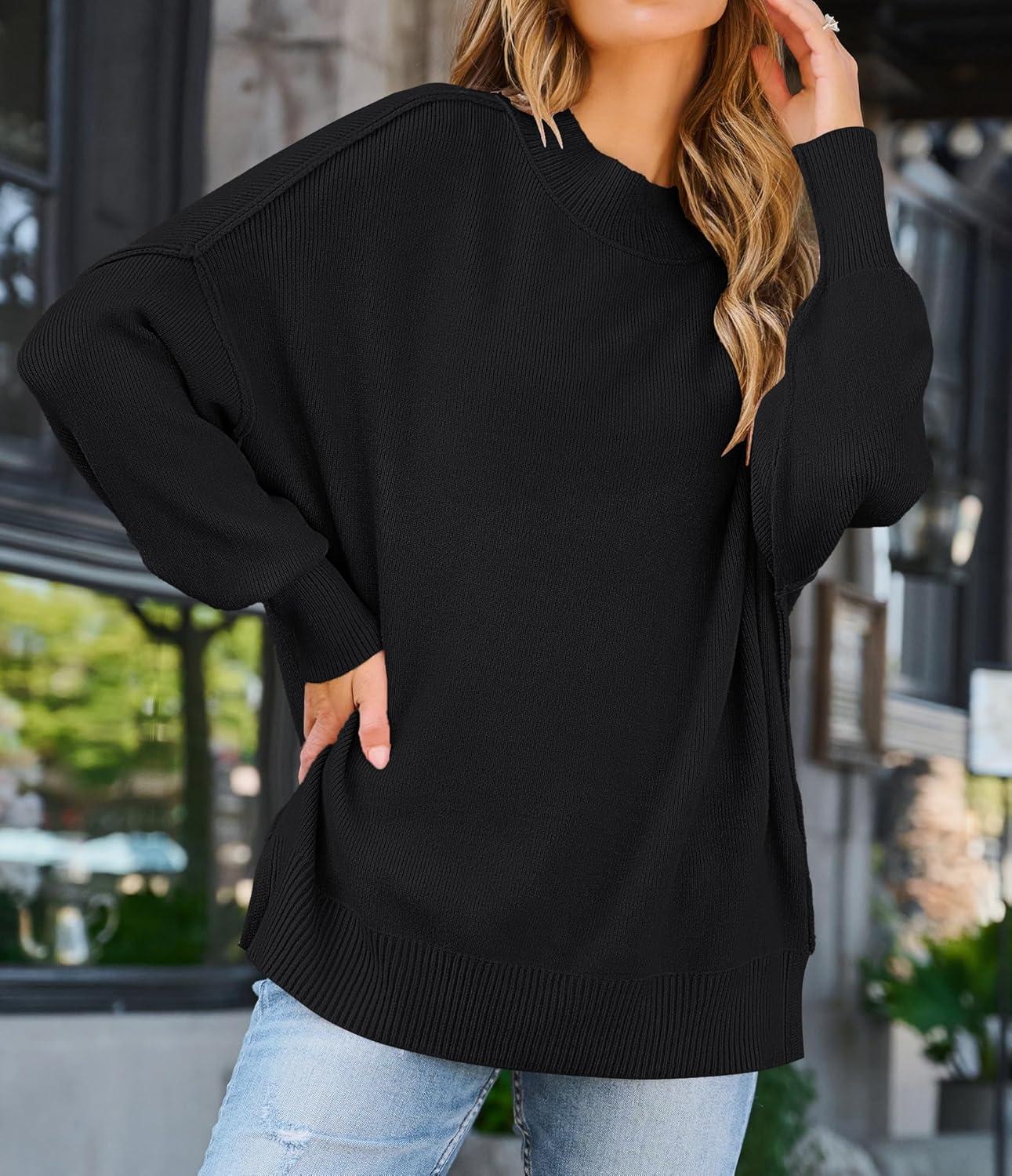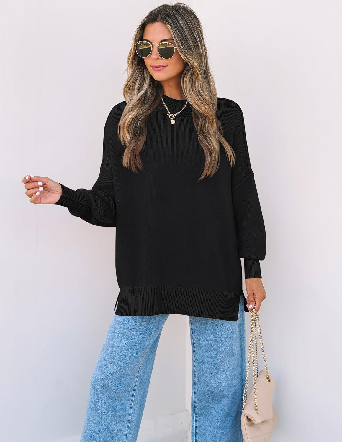 Get the ZESICA Women’s Fall Casual Long Sleeve Crew Neck Side Slit Oversized Ribbed Knit Pullover Sweater Tops(Black) you’ve been eyeing at a discounted price during our seasonal sale event.
