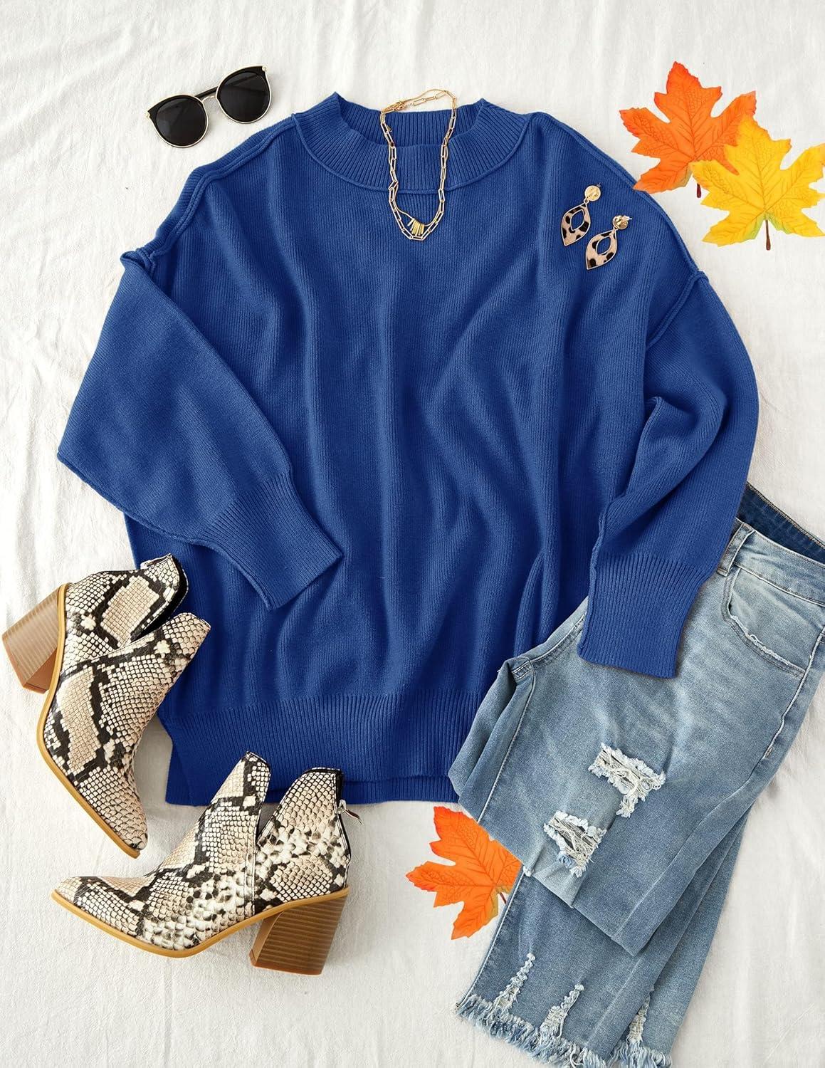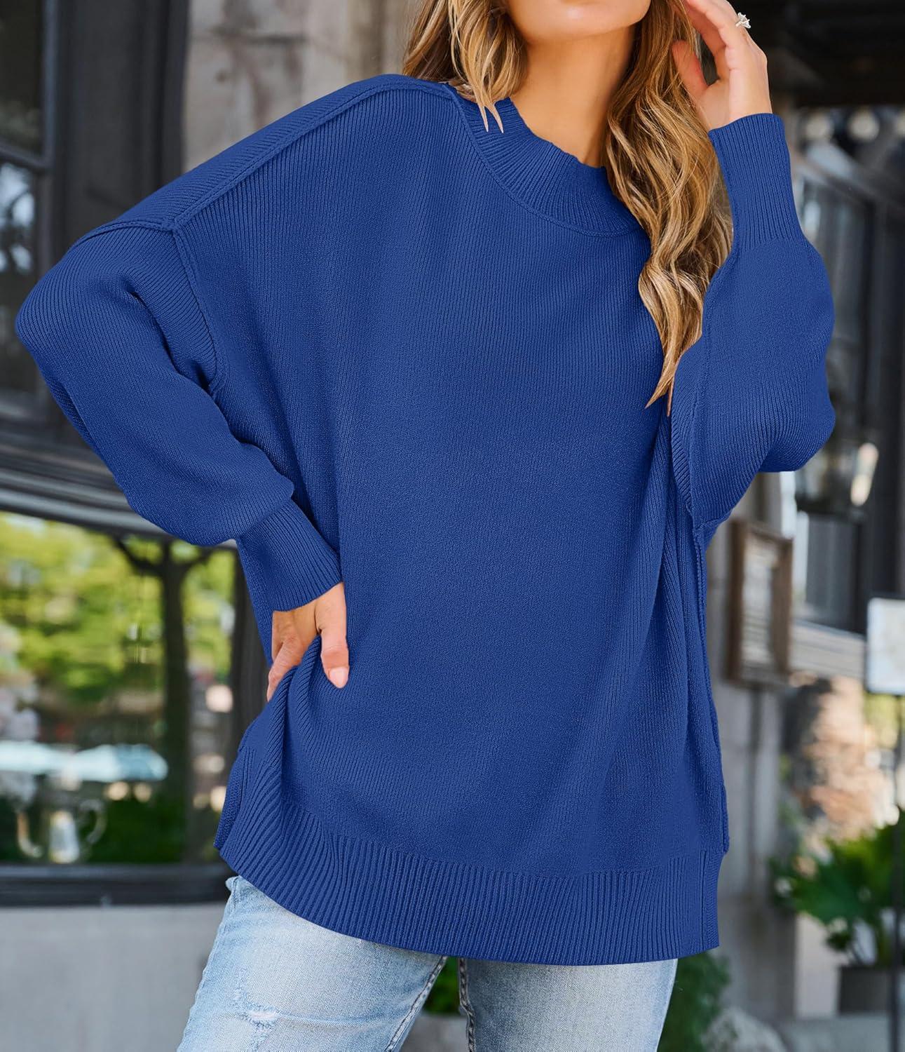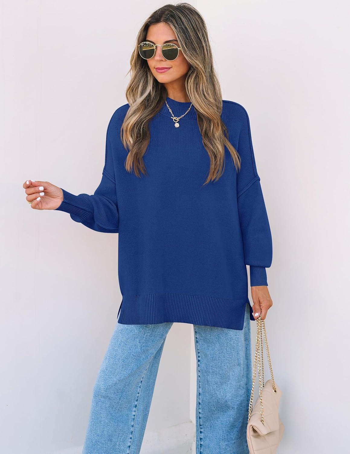 Don’t miss out on our limited-time offer: get a free {accessory} with your purchase of ZESICA Women’s Fall Casual Long Sleeve Crew Neck Side Slit Oversized Ribbed Knit Pullover Sweater Tops(Royalblue).