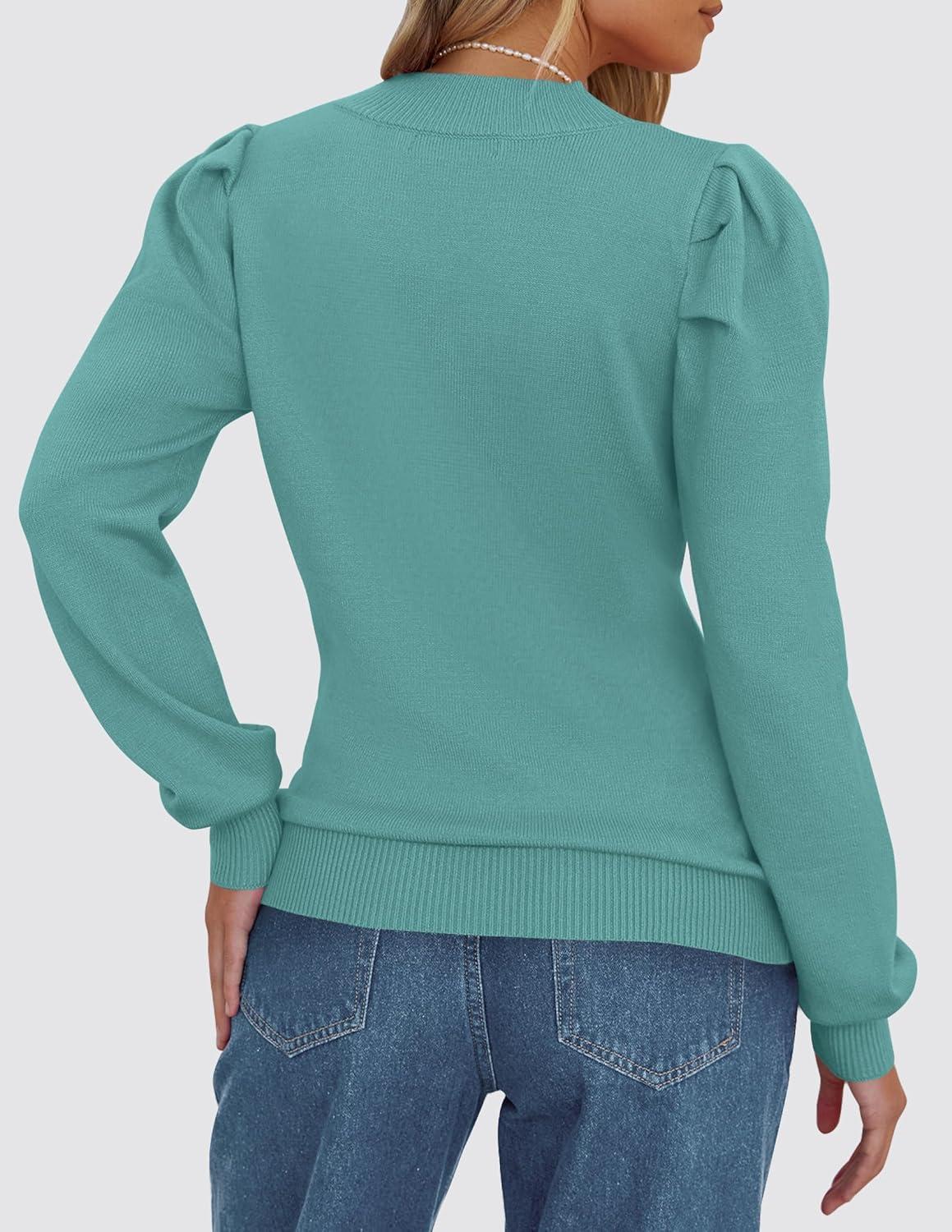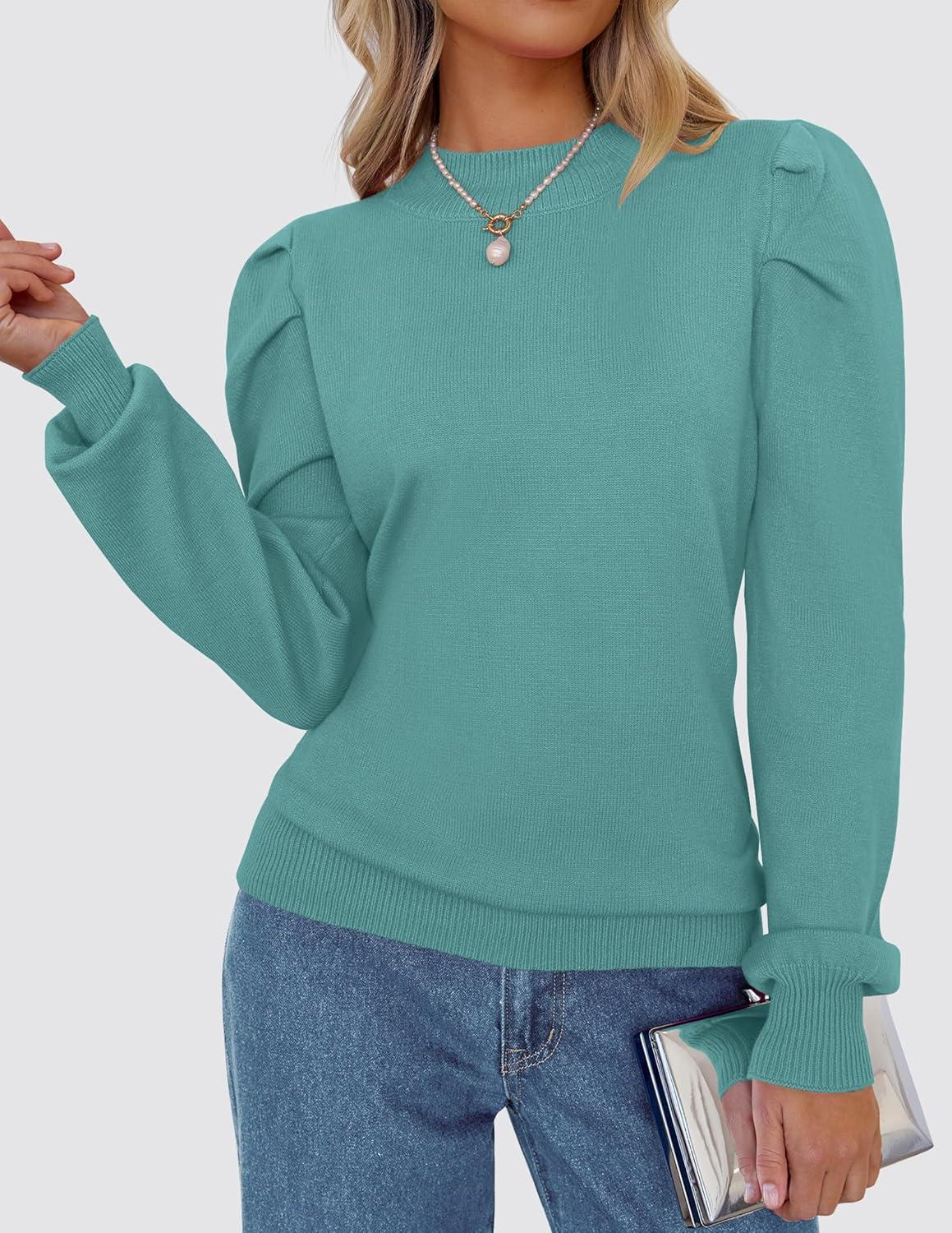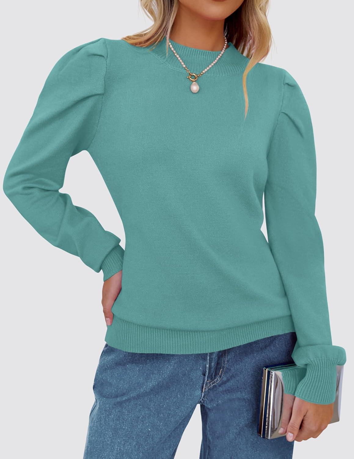 Don’t miss out on our limited-time offer: buy ZESICA Womens Fall Long Puff Sleeve Sweaters 2024 Casual Turtleneck Loose Ribbed Knit Solid Color Soft Pullover Jumper Tops(Mint), get {accessory} free!