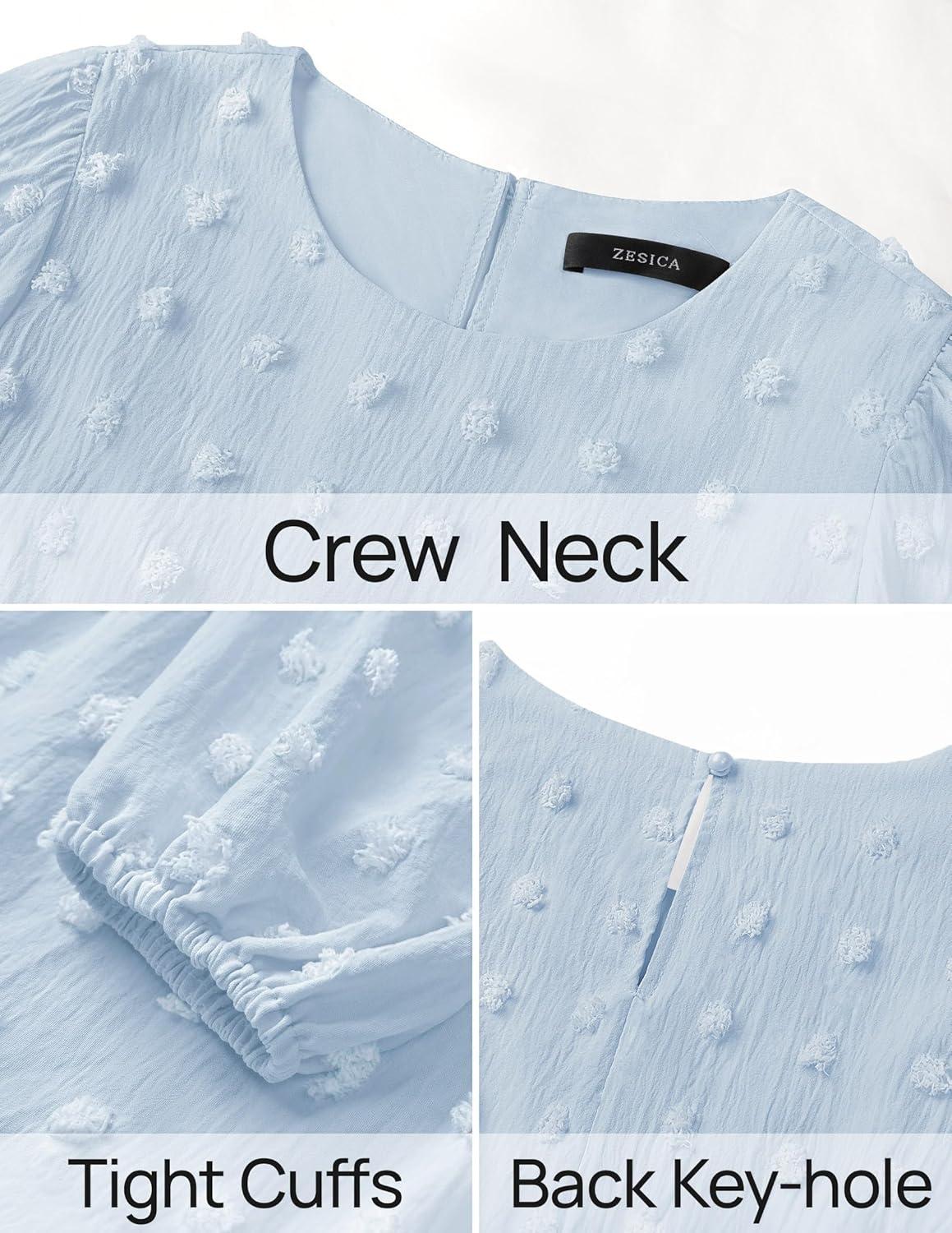 imageZESICA Womens Fall Long Sleeve Maxi Dresses 2025 Crew Neck Swiss Dot Tiered Flowy A Line Wedding Cocktail Party DressLight Blue