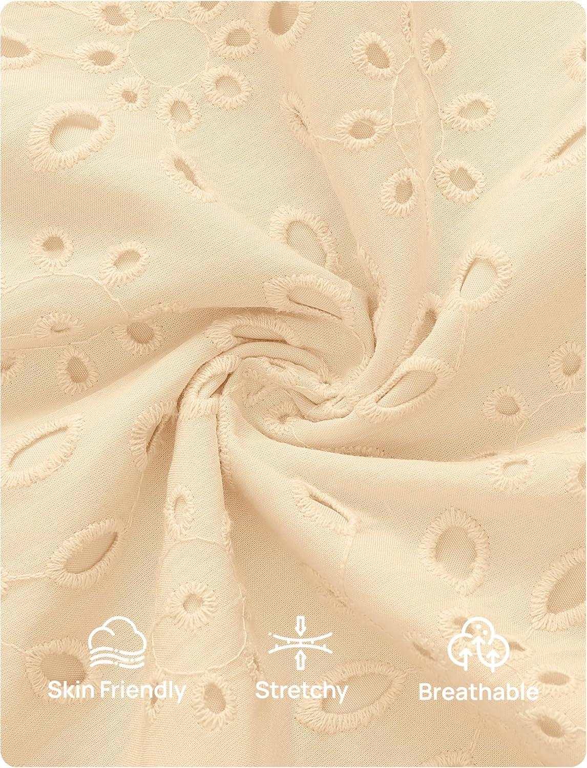 ZESICA Women's Fall Long Sleeve Maxi Dresses 2025 Square Neck Hollow Out Eyelet Smocked A Line Boho Wedding Guset Dress(Apricot)