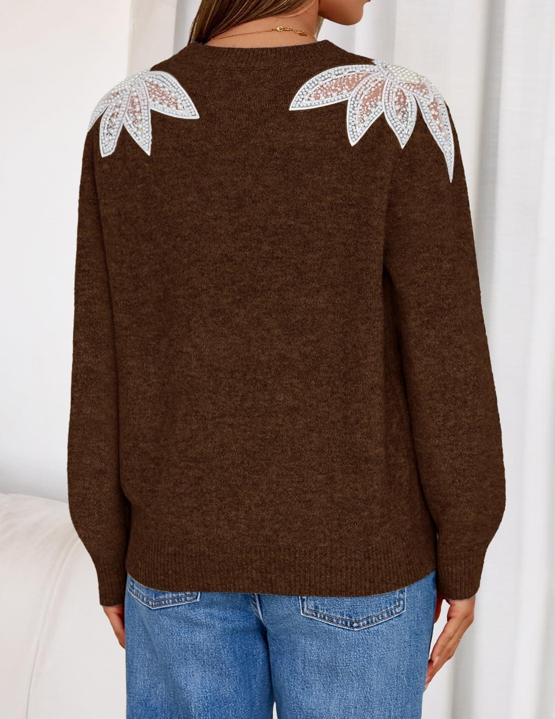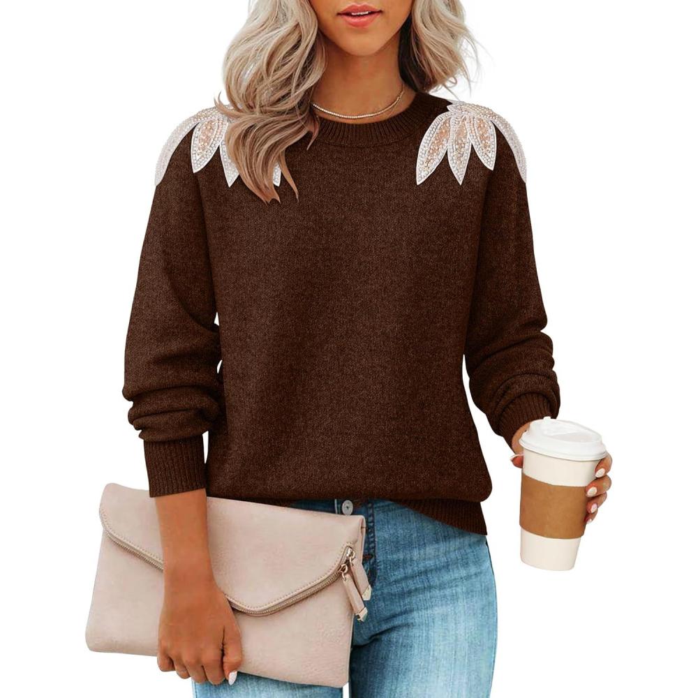 imageZESICA Womens Fall Long Sleeve Sweaters 2025 Crew Neck Knit Loose Dressy Pullover Tops Winter Trendy OutfitsCaramel