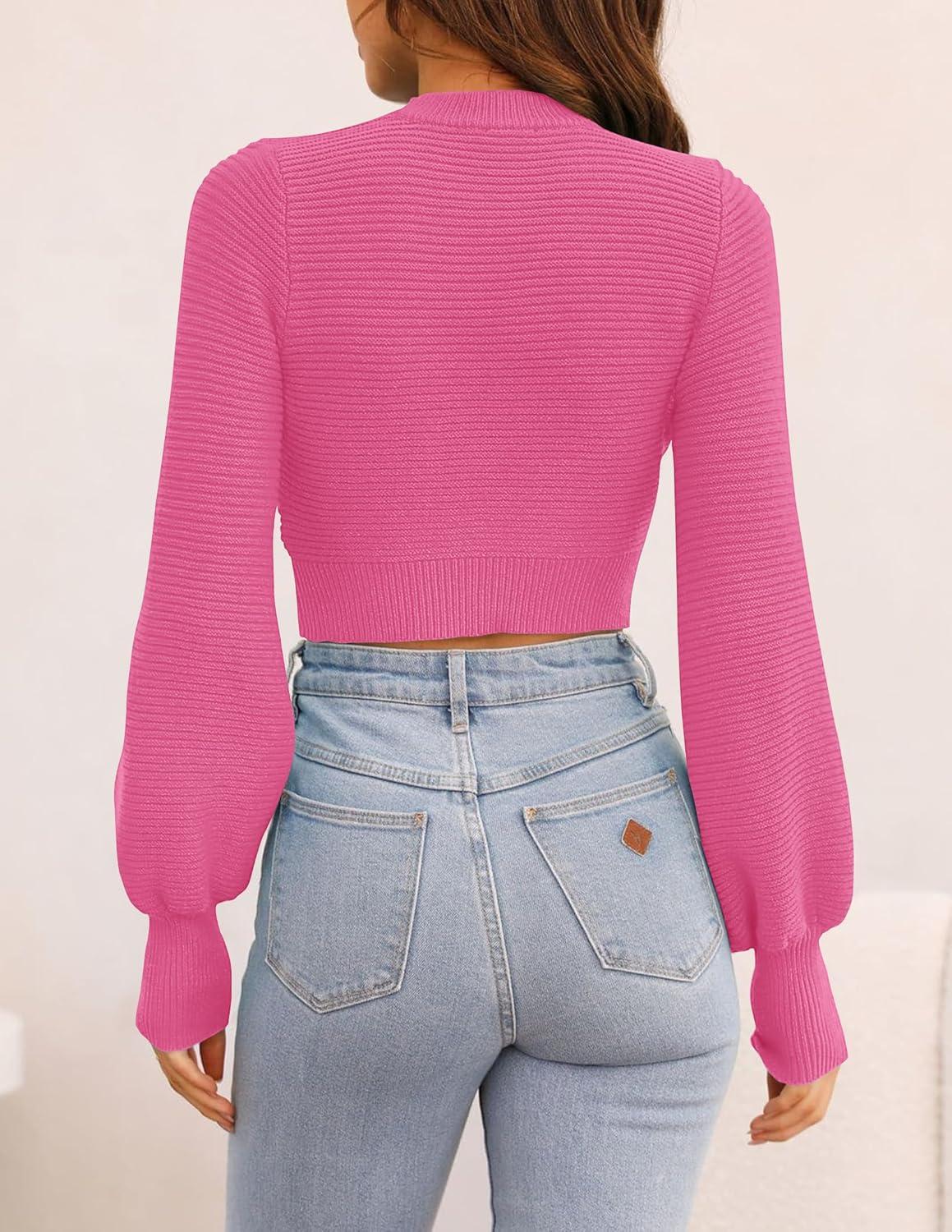 ZESICA Women’s Fall Mock Neck Cropped Sweater Long Sleeve Soft Ribbed Knit Pullover Jumper Tops(Rose)