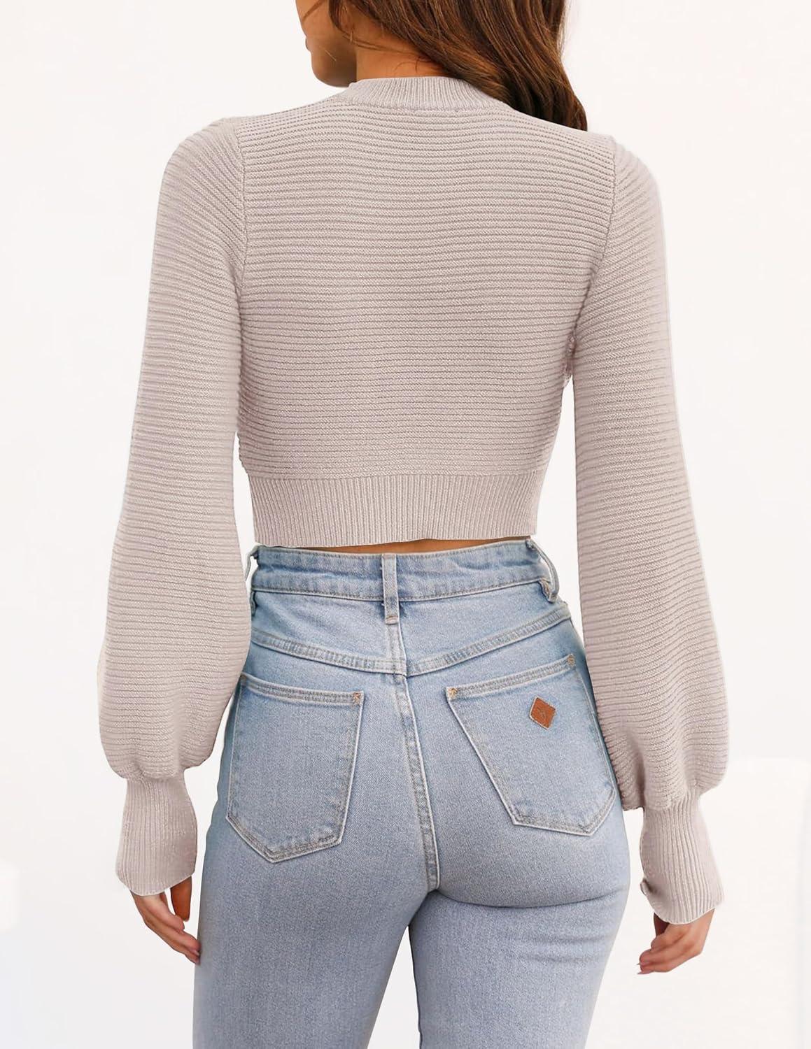ZESICA Women’s Fall Mock Neck Cropped Sweater Long Sleeve Soft Ribbed Knit Pullover Jumper Tops(Sand)