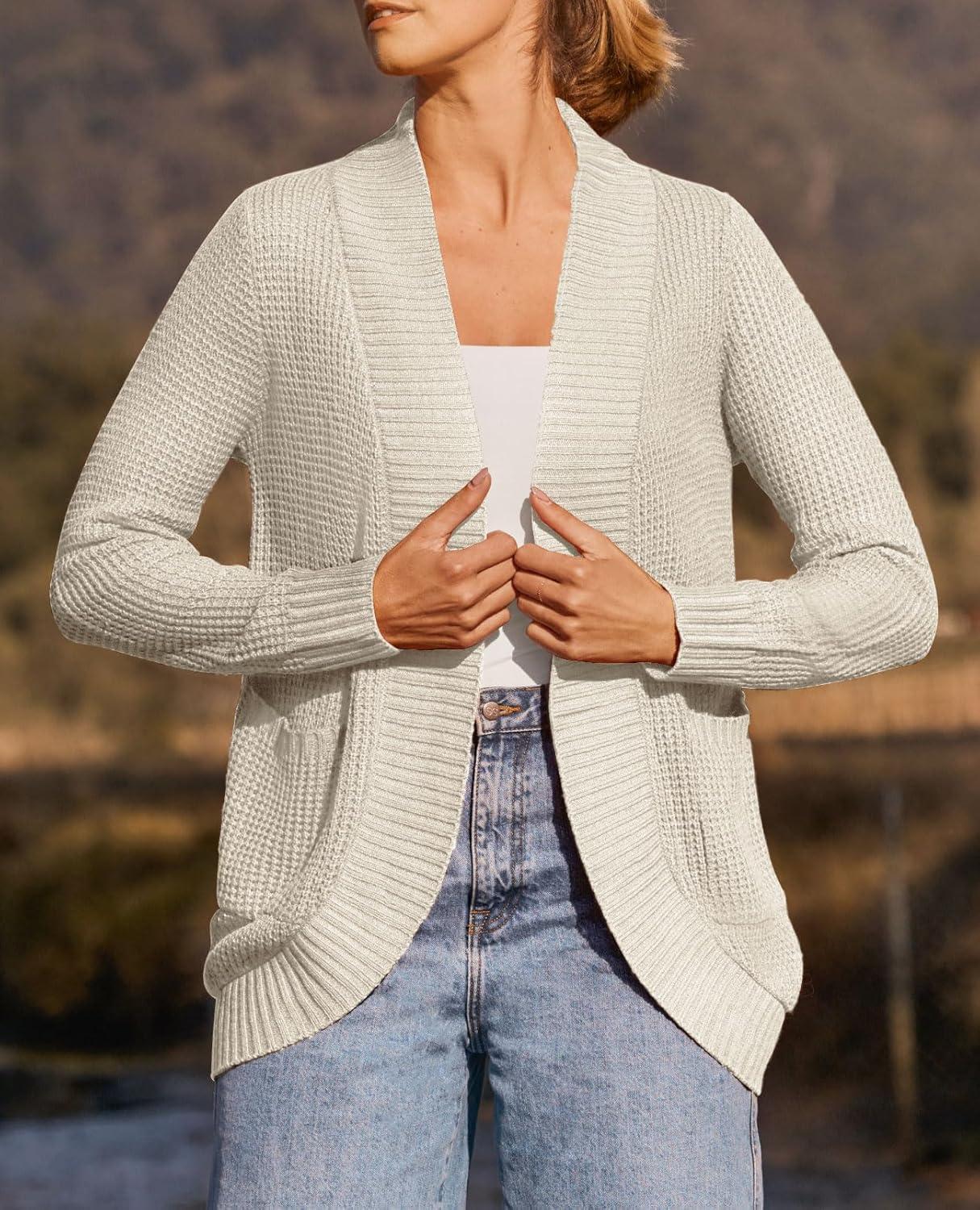 ZESICA Women’s Fall Winter 2025 Long Sleeve Open Front Casual Lightweight Soft Knit Cardigan Sweater Outerwear(Black)