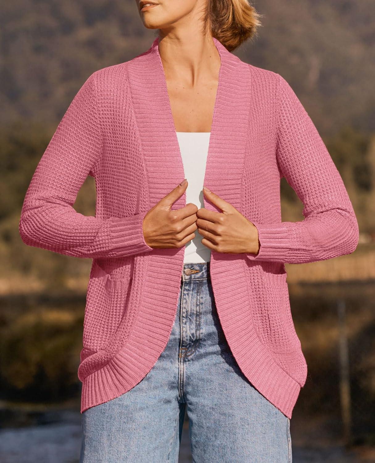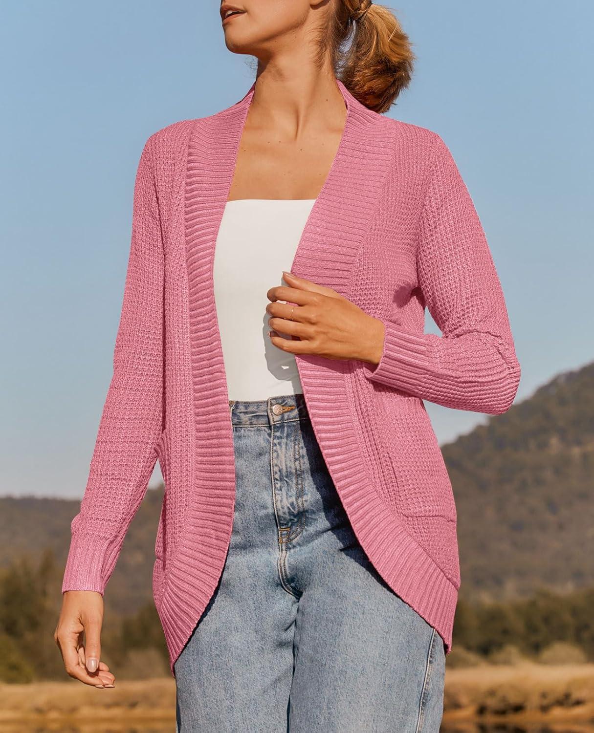 ZESICA Women’s Fall Winter 2025 Long Sleeve Open Front Casual Lightweight Soft Knit Cardigan Sweater Outerwear(Darkpink)