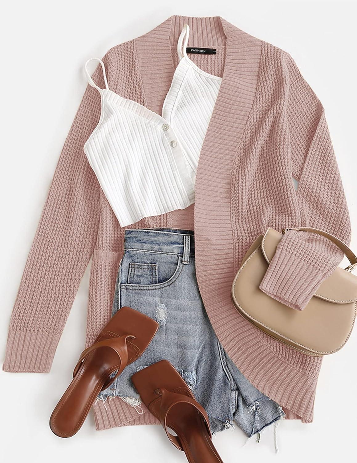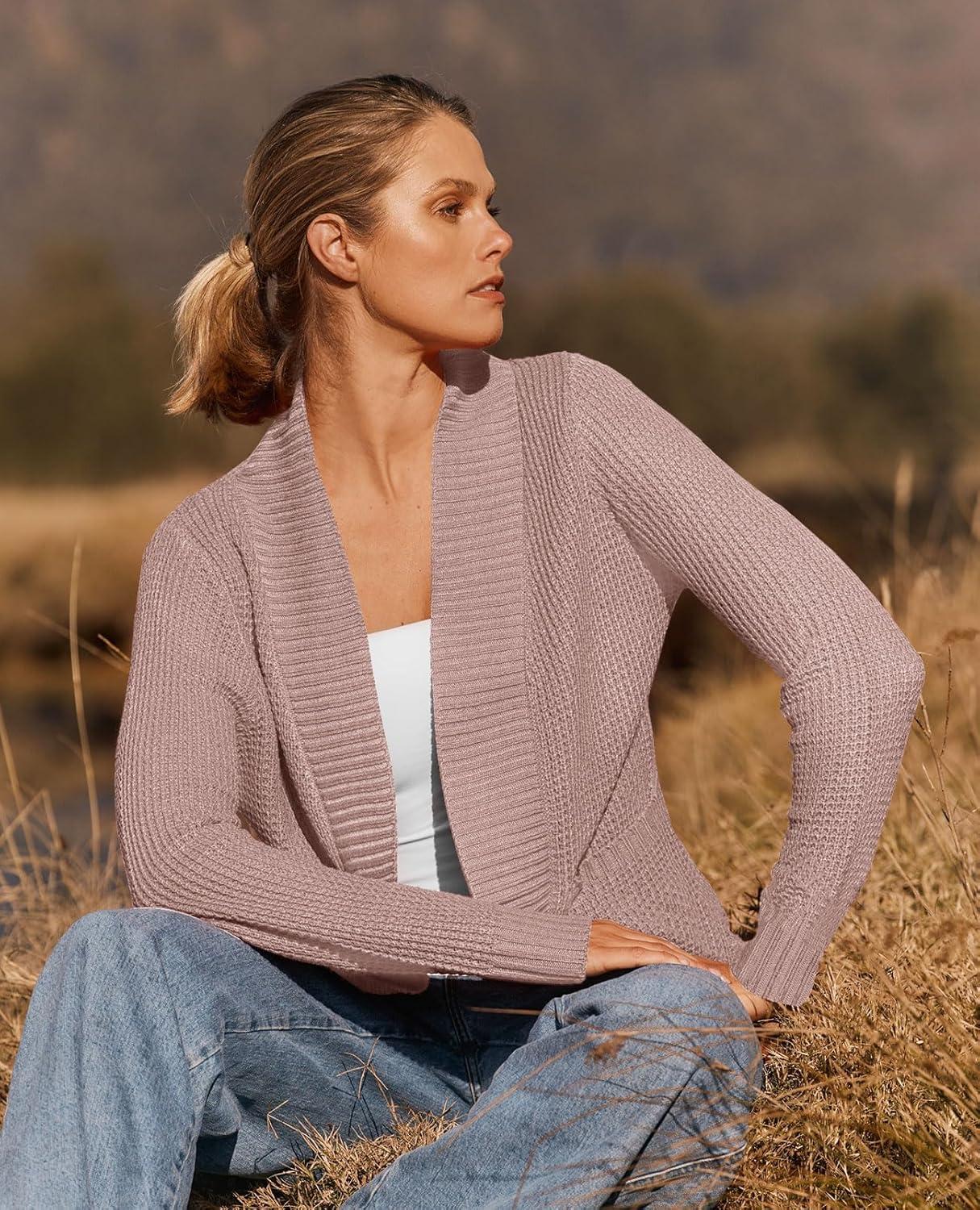 ZESICA Women’s Fall Winter 2025 Long Sleeve Open Front Casual Lightweight Soft Knit Cardigan Sweater Outerwear(Dustypink)