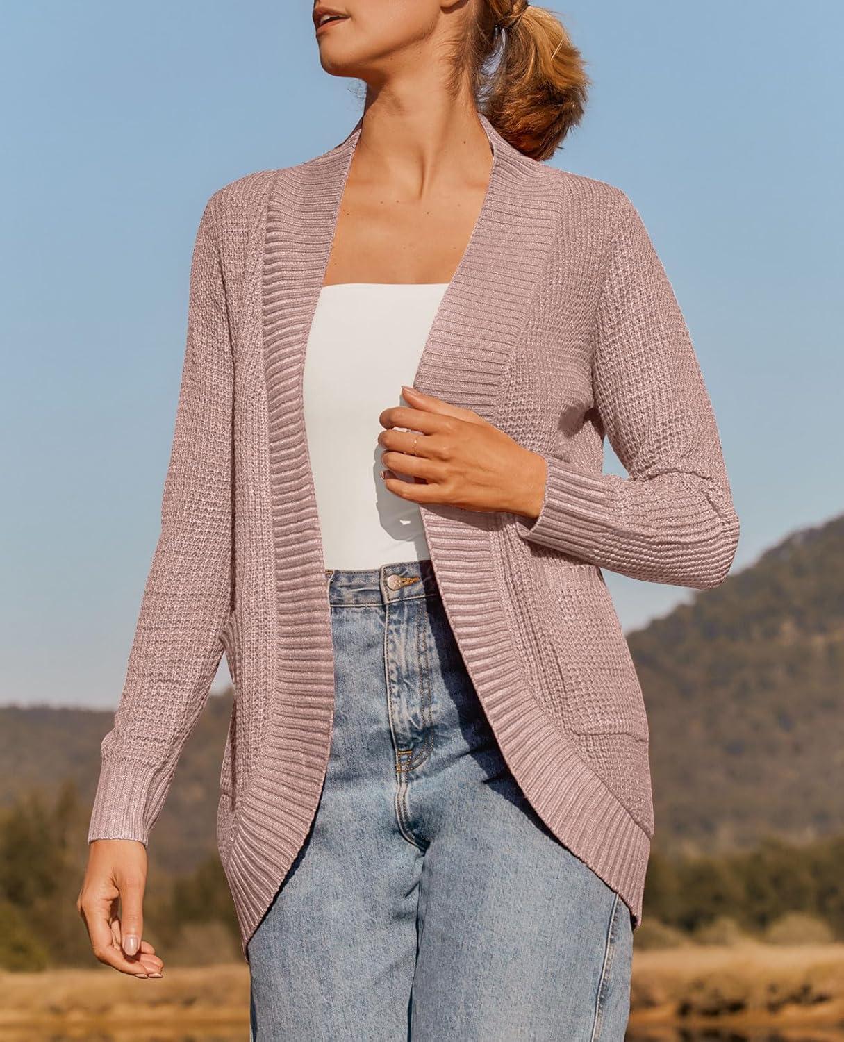 ZESICA Women's Fall Winter 2025 Long Sleeve Open Front Casual Lightweight Soft Knit Cardigan Sweater Outerwear(Dustypink)