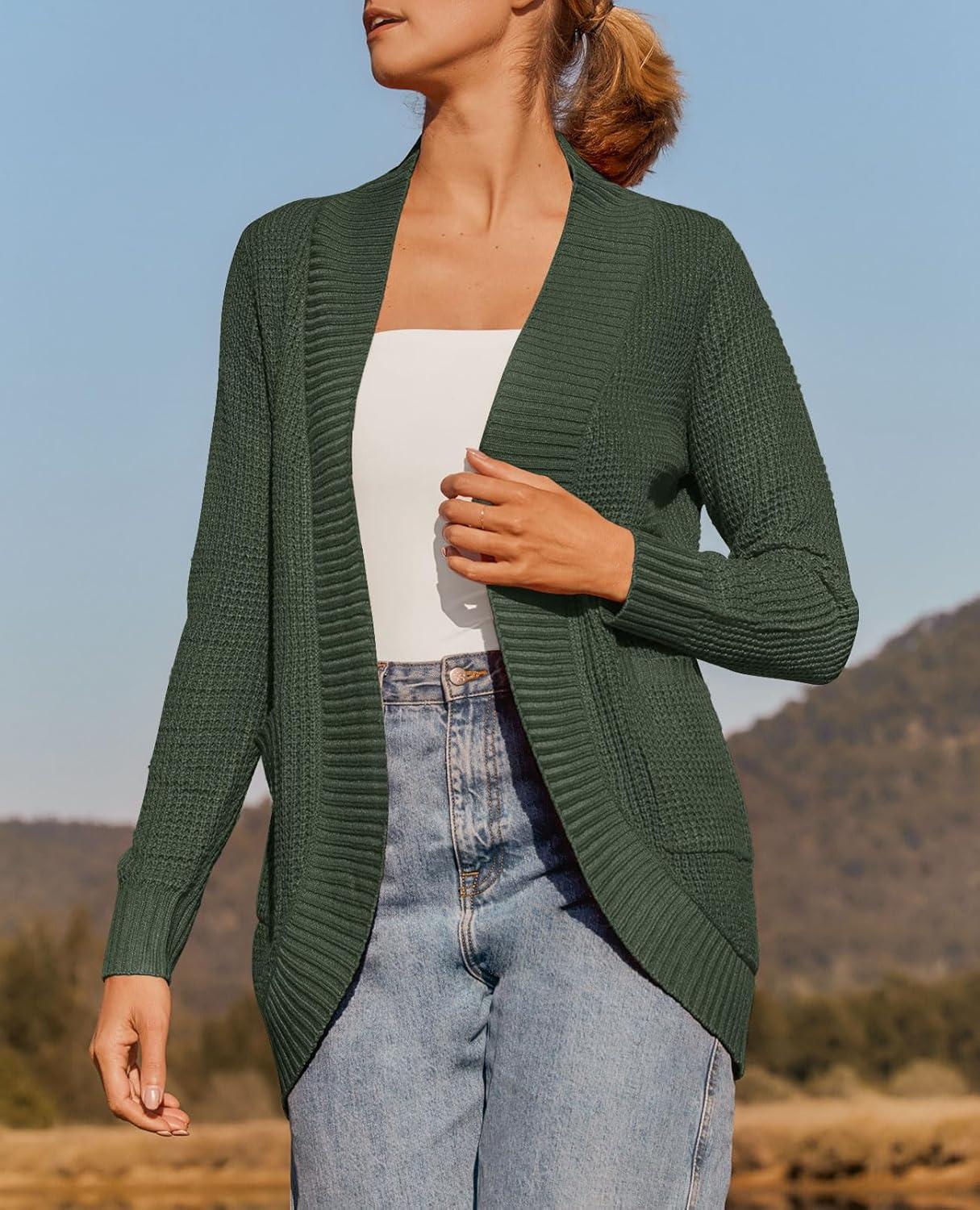 ZESICA Women’s Fall Winter 2025 Long Sleeve Open Front Casual Lightweight Soft Knit Cardigan Sweater Outerwear(Forestgreen)