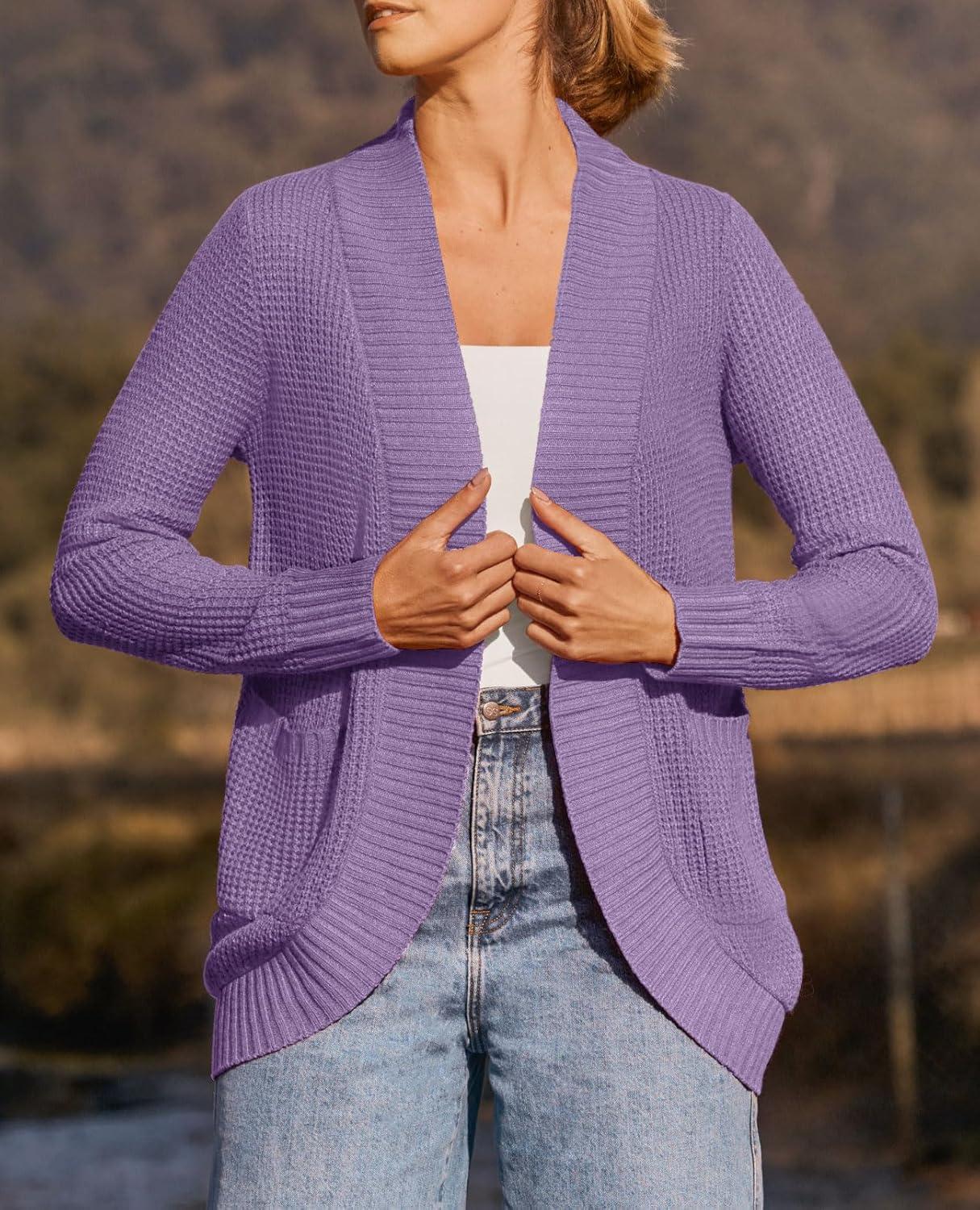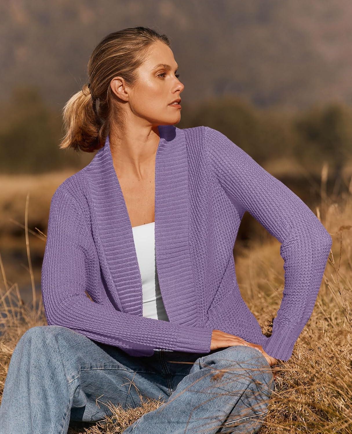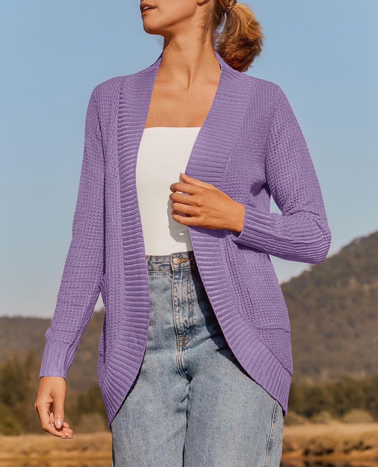 ZESICA Women’s Fall Winter 2025 Long Sleeve Open Front Casual Lightweight Soft Knit Cardigan Sweater Outerwear(Violet)