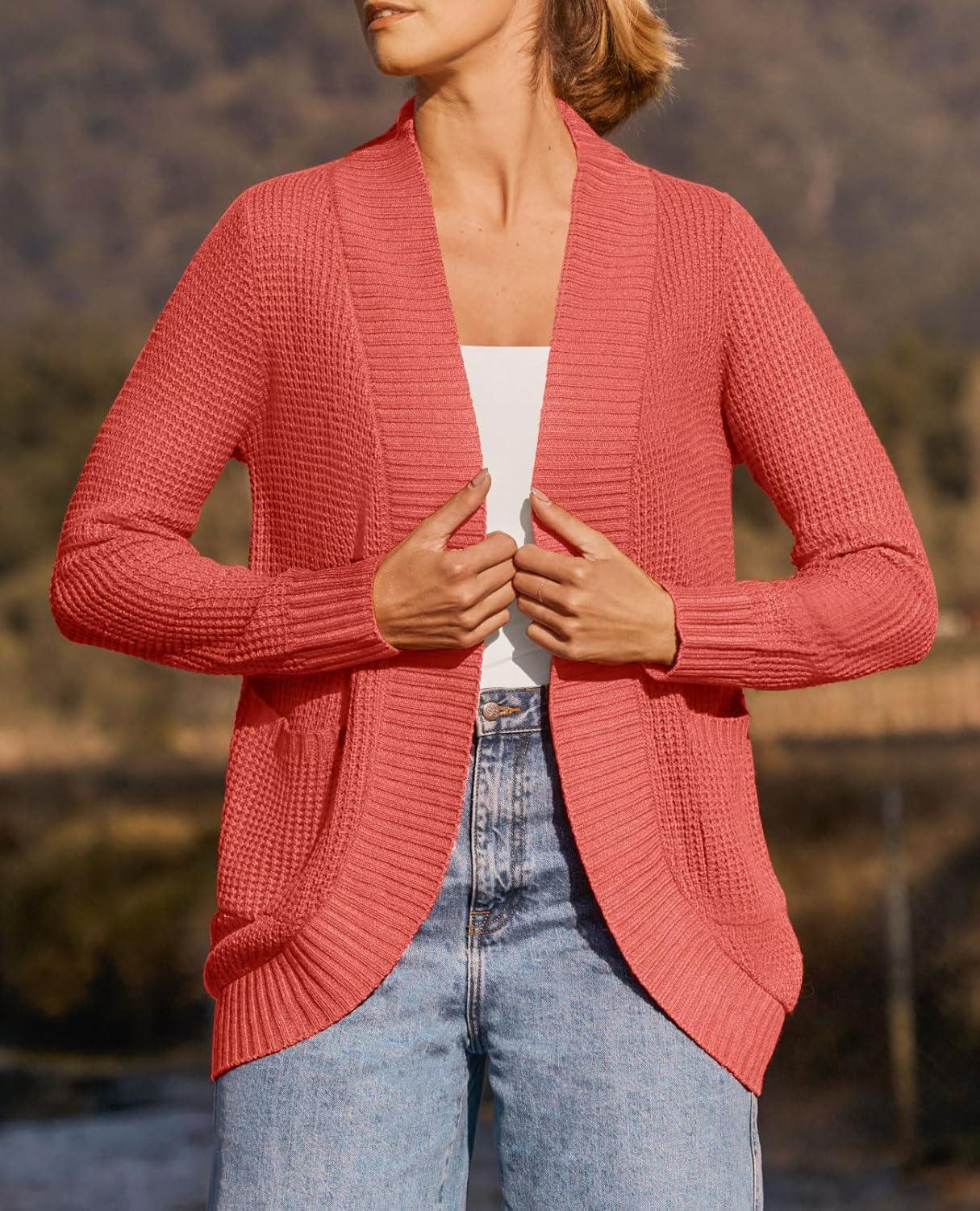 ZESICA Women's Fall Winter 2025 Long Sleeve Open Front Casual Lightweight Soft Knit Cardigan Sweater Outerwear(Watermelon)