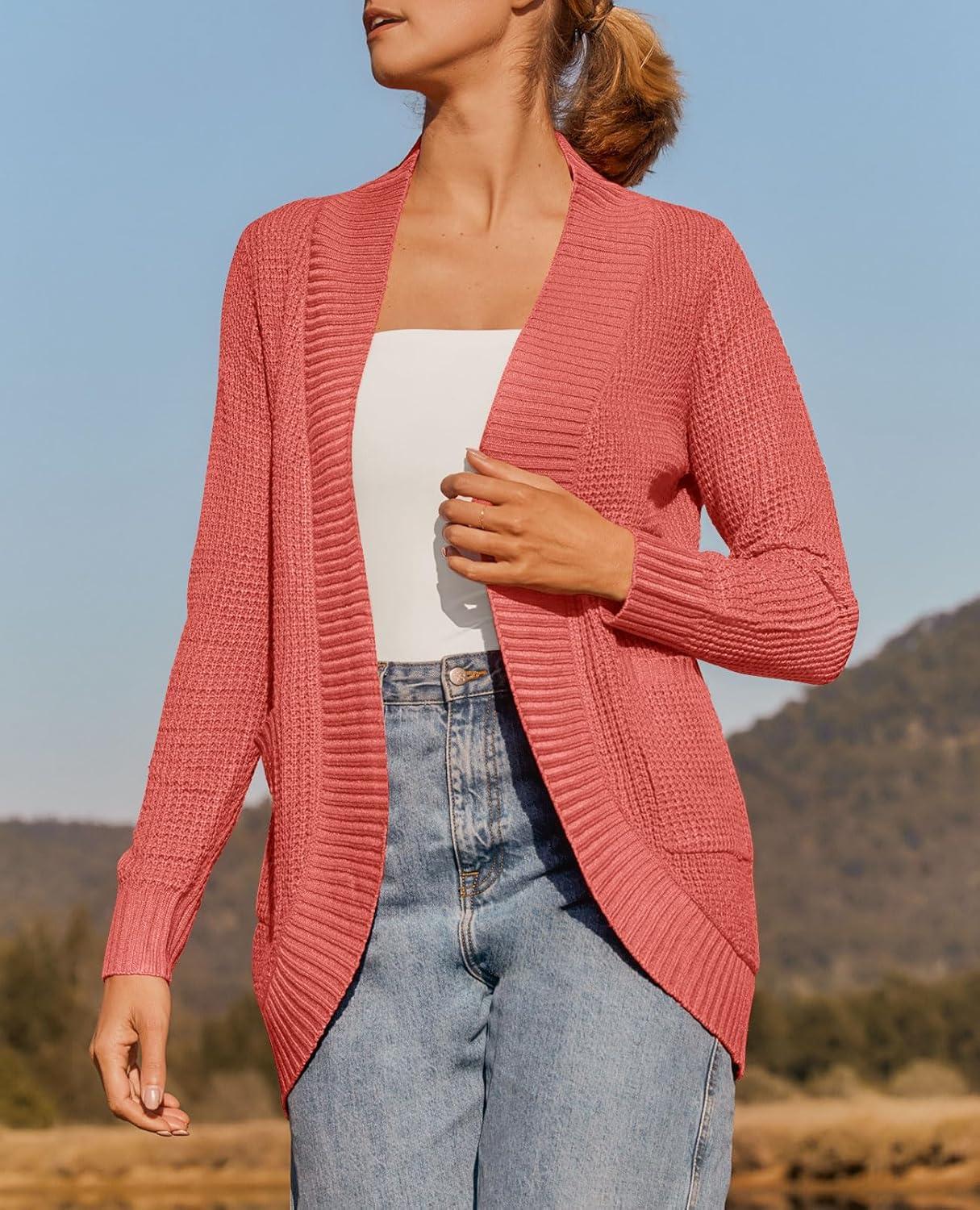 ZESICA Women’s Fall Winter 2025 Long Sleeve Open Front Casual Lightweight Soft Knit Cardigan Sweater Outerwear(Watermelon)