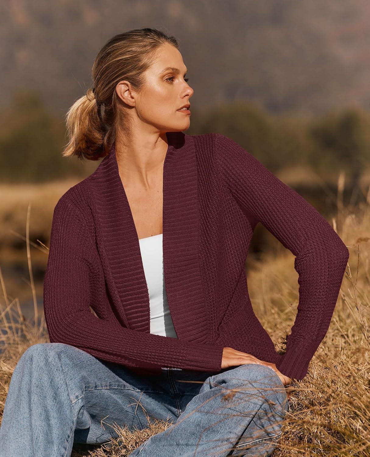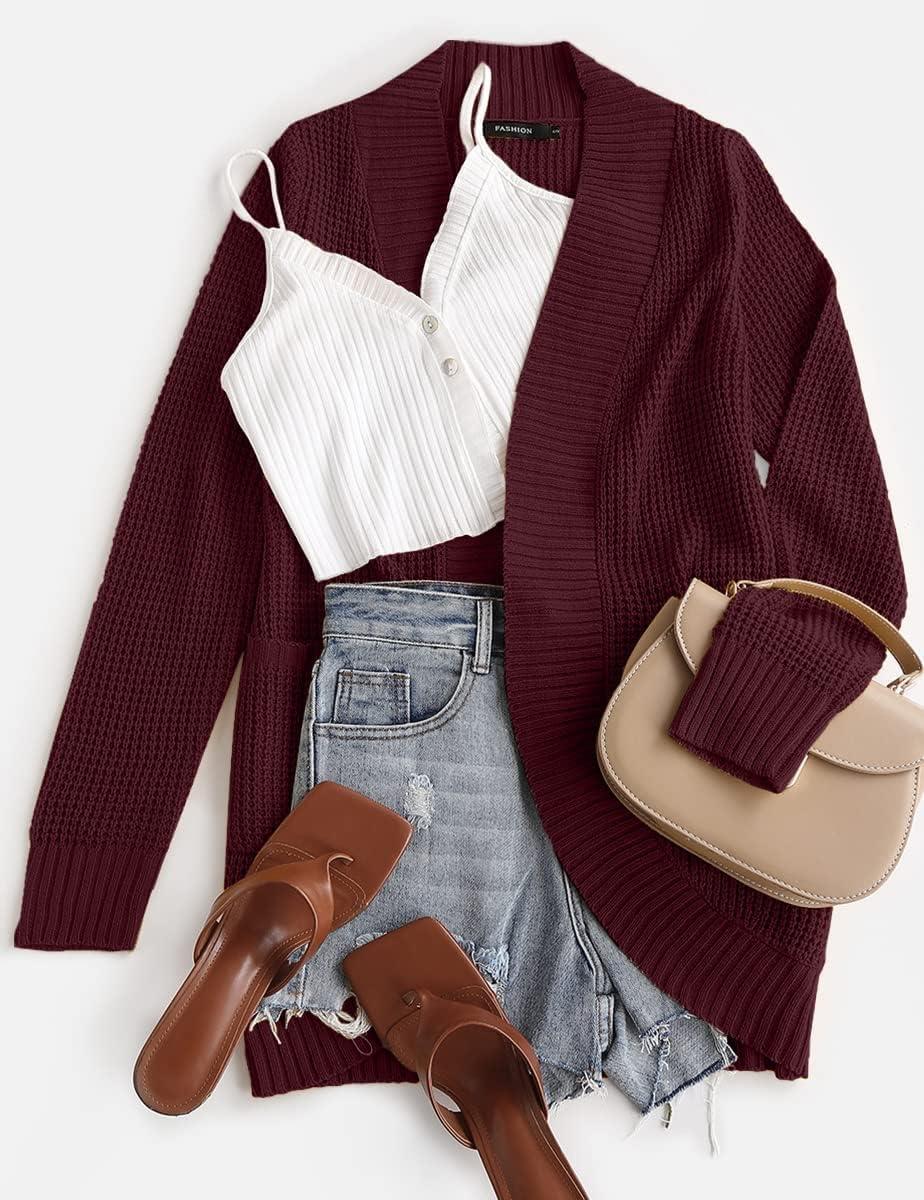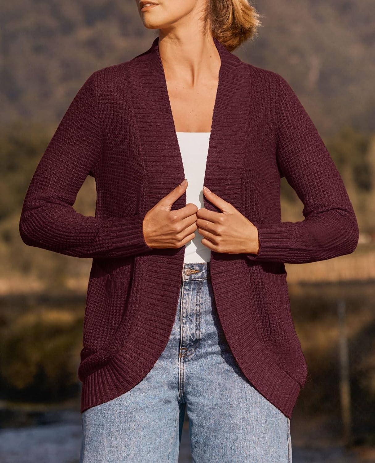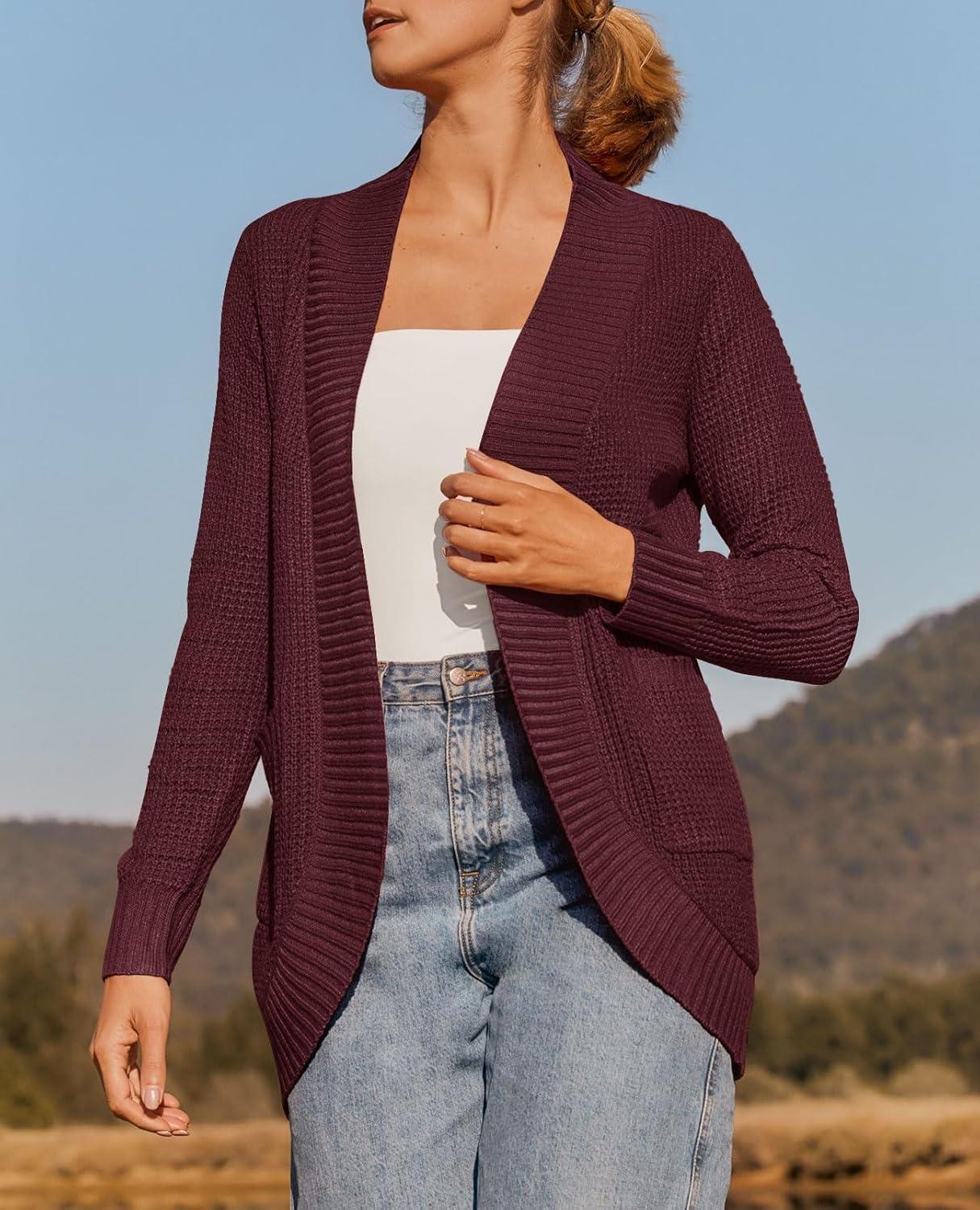 ZESICA Women’s Fall Winter 2025 Long Sleeve Open Front Casual Lightweight Soft Knit Cardigan Sweater Outerwear(Wine)