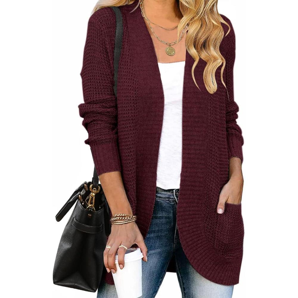 ZESICA Women's Fall Winter 2025 Long Sleeve Open Front Casual Lightweight Soft Knit Cardigan Sweater Outerwear(Wine)