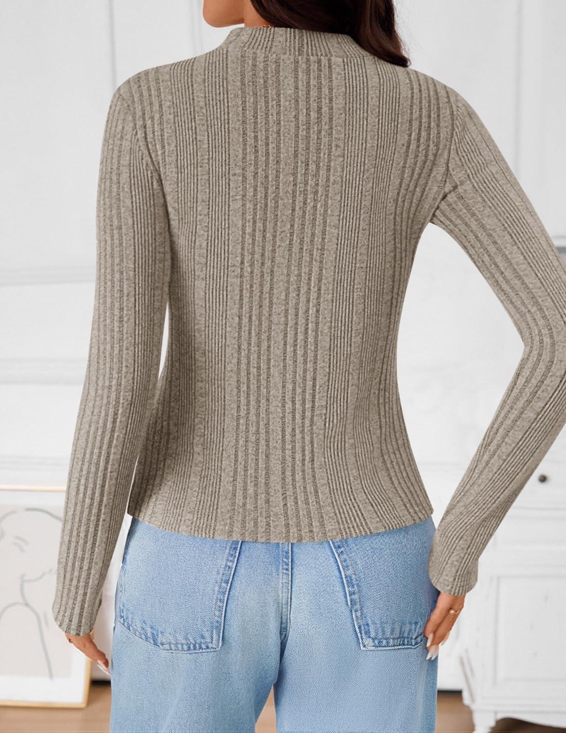 ZESICA Women’s Fleece Sherpa Lined Tops Long Sleeve Mock Neck Knit Thermal Basic Shirts 2025 Fall Winter Clothes(Oats)