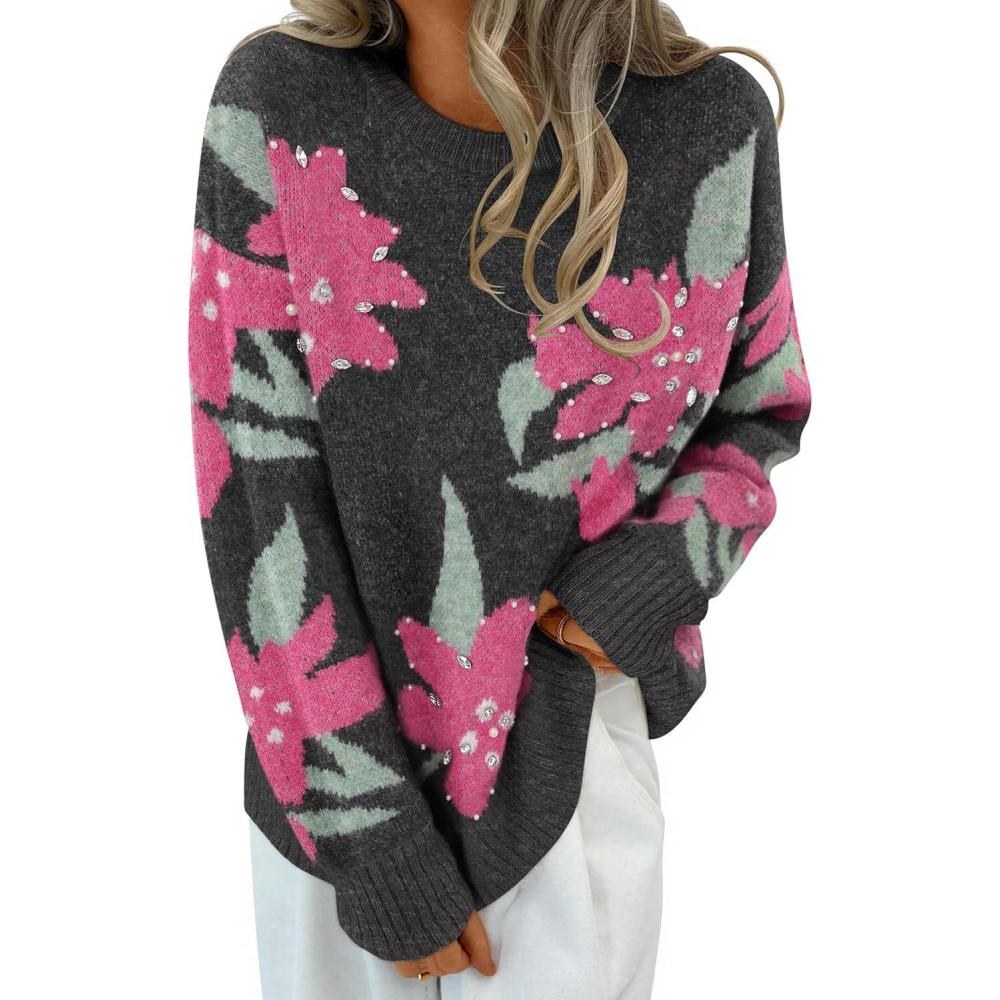 ZESICA Women’s Floral Oversized Sweaters 2025 Fall Crewneck Long Sleeve Casual Chunky Knit Pullover Sweater Tops(Carbon Grey)