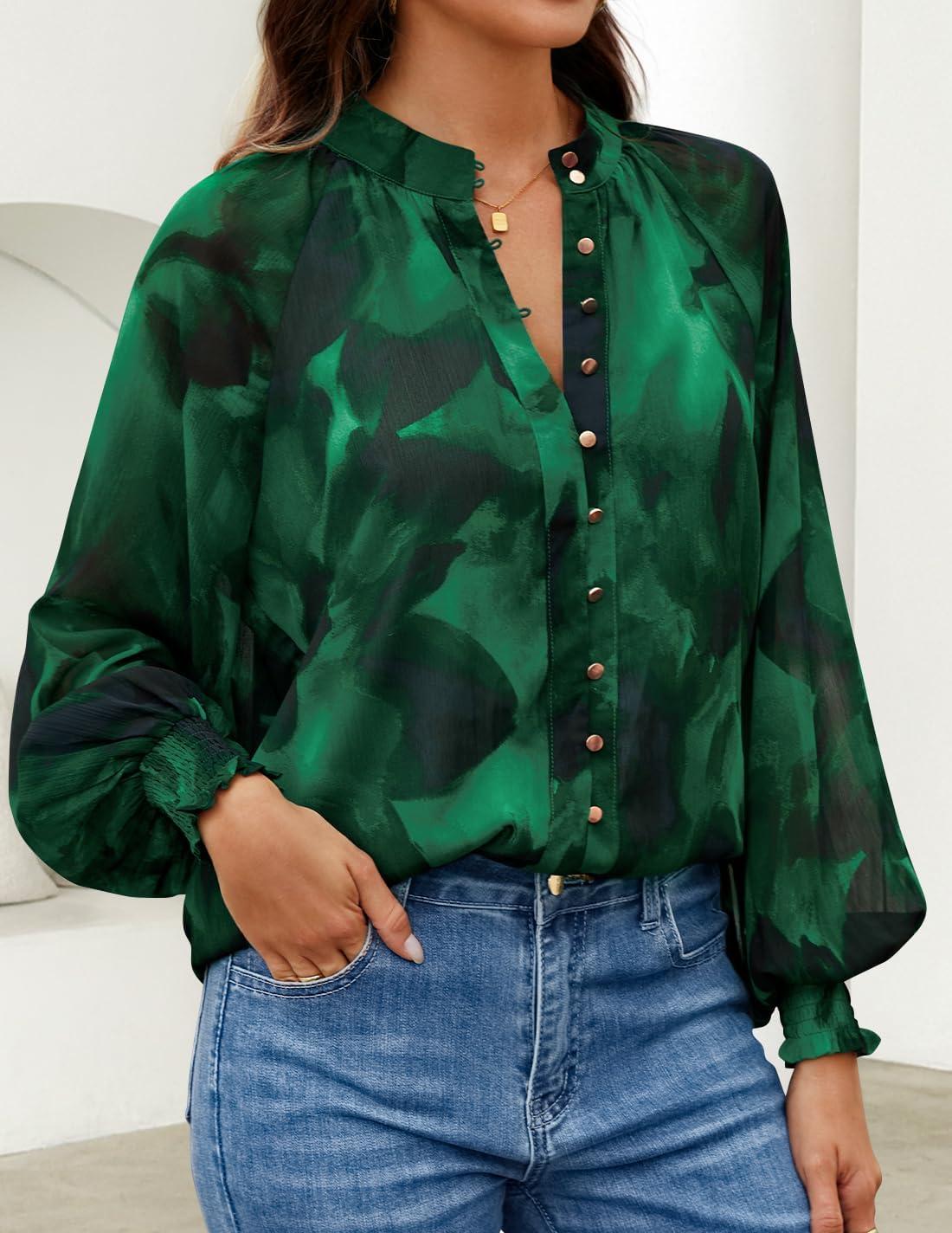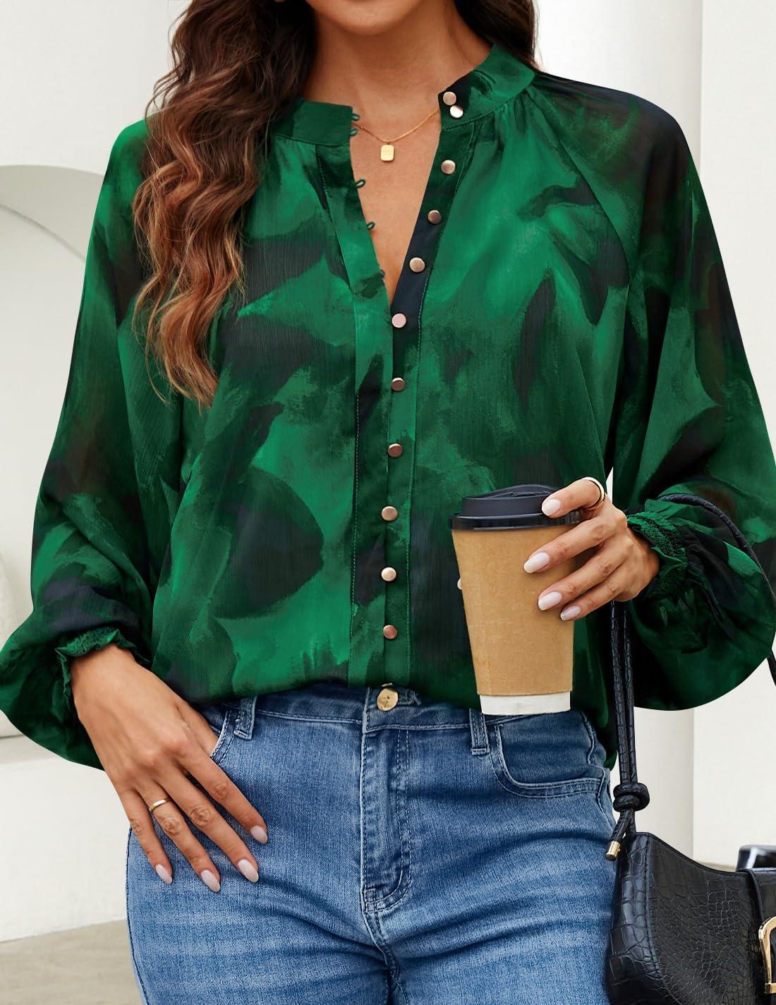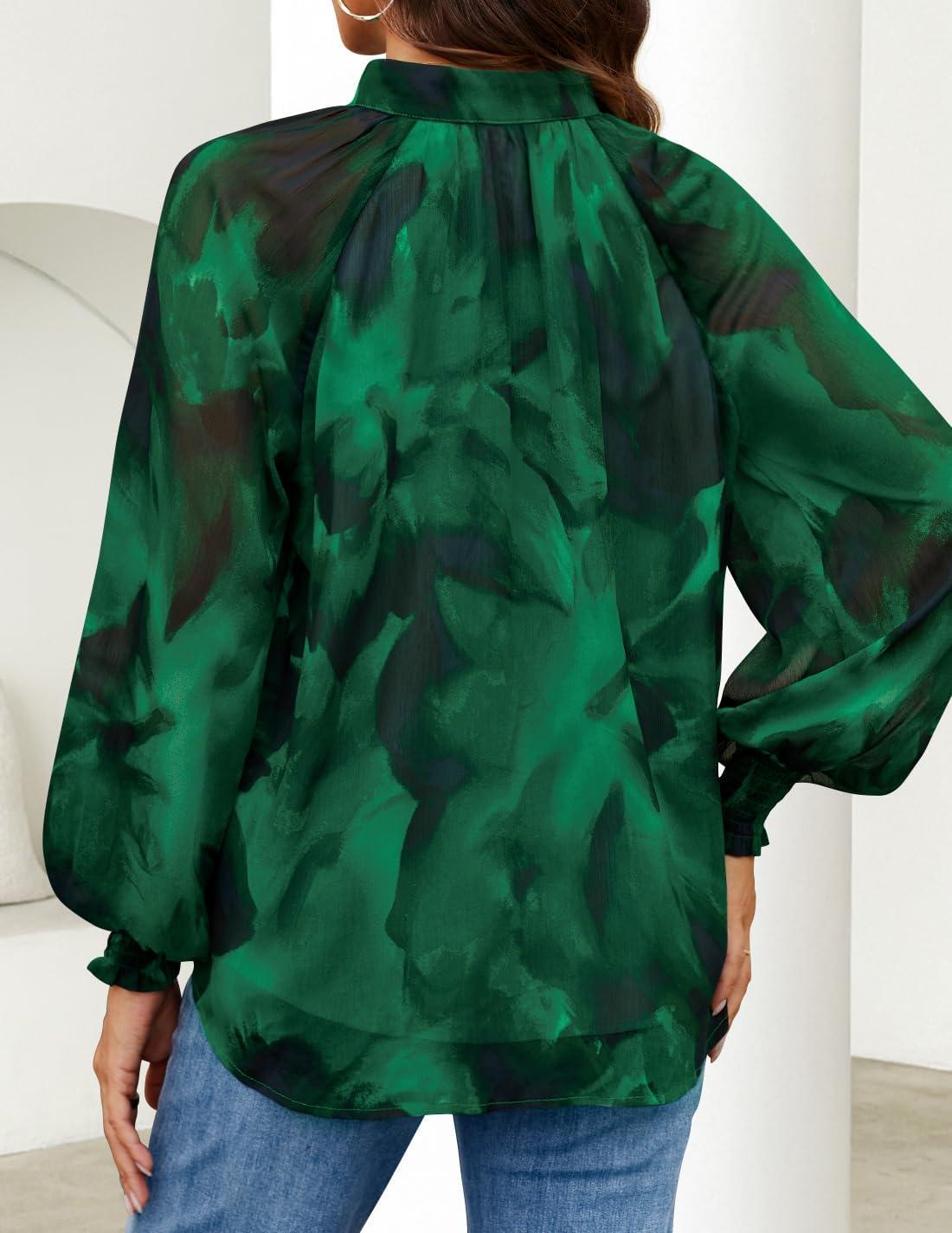 ZESICA Women’s Floral Print Blouse 2025 Long Sleeve Button Down Casual Fall Boho Oversized Tops Shirts(Dark Green)
