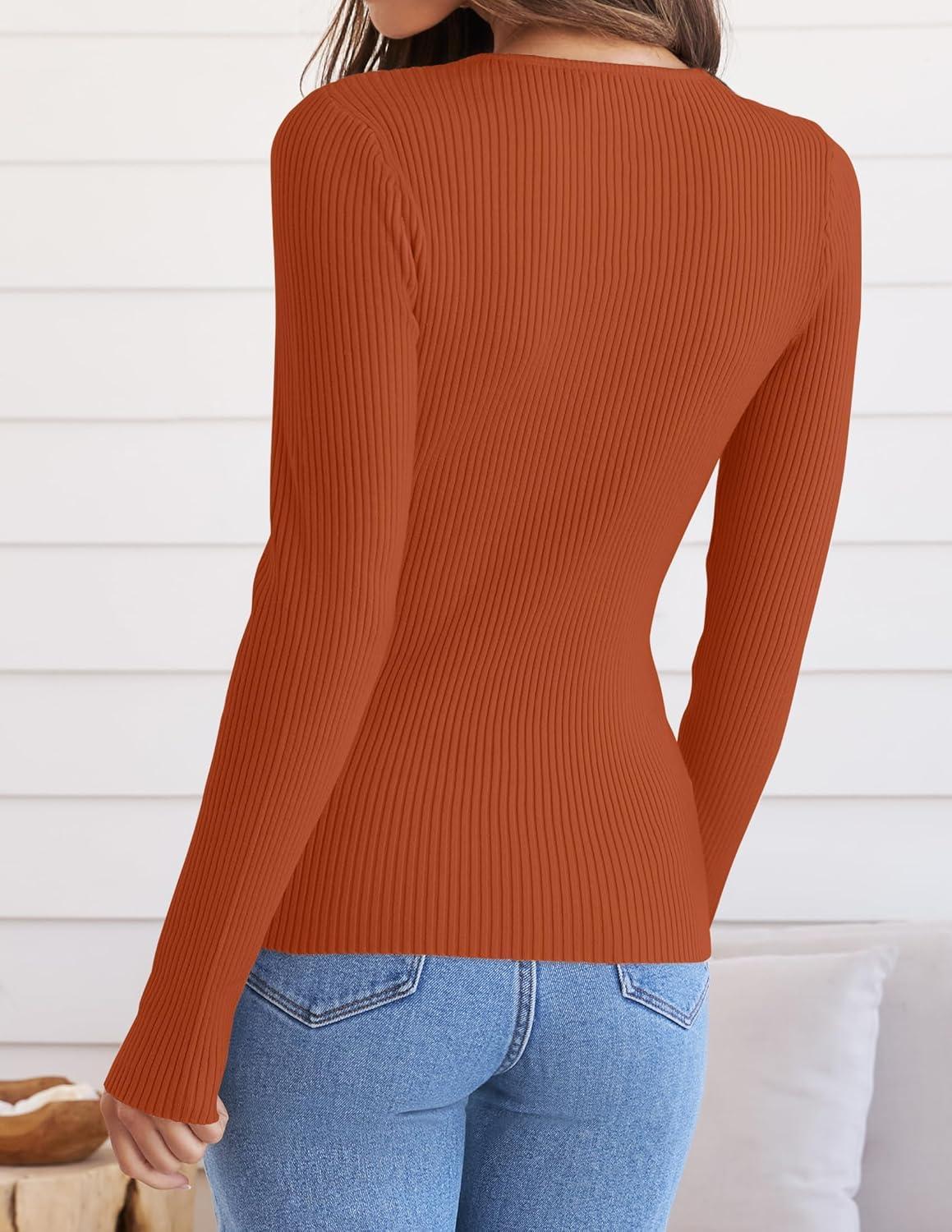 ZESICA Women’s Long Sleeve Crewneck Shirts 2025 Fall Ribbed Knit Sweater Slim Fitted Casual Basic Tee Tops(Caramel)