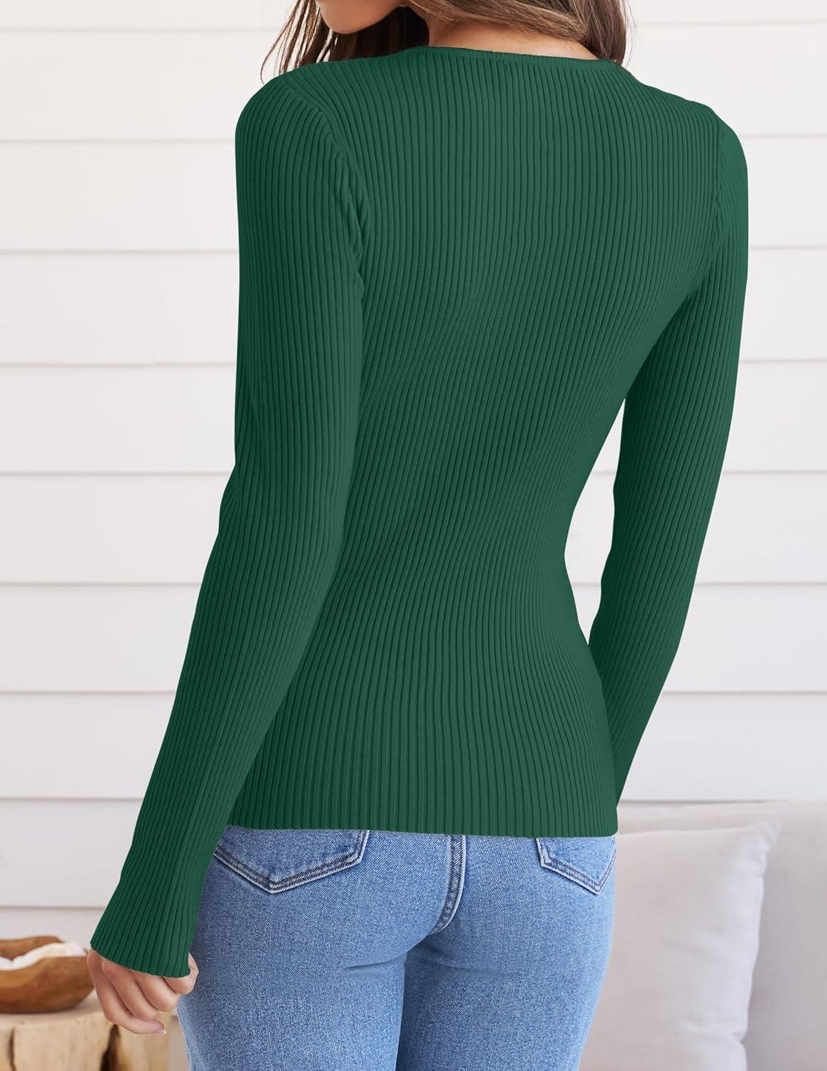 ZESICA Women’s Long Sleeve Crewneck Shirts 2025 Fall Ribbed Knit Sweater Slim Fitted Casual Basic Tee Tops(Darkgreen)