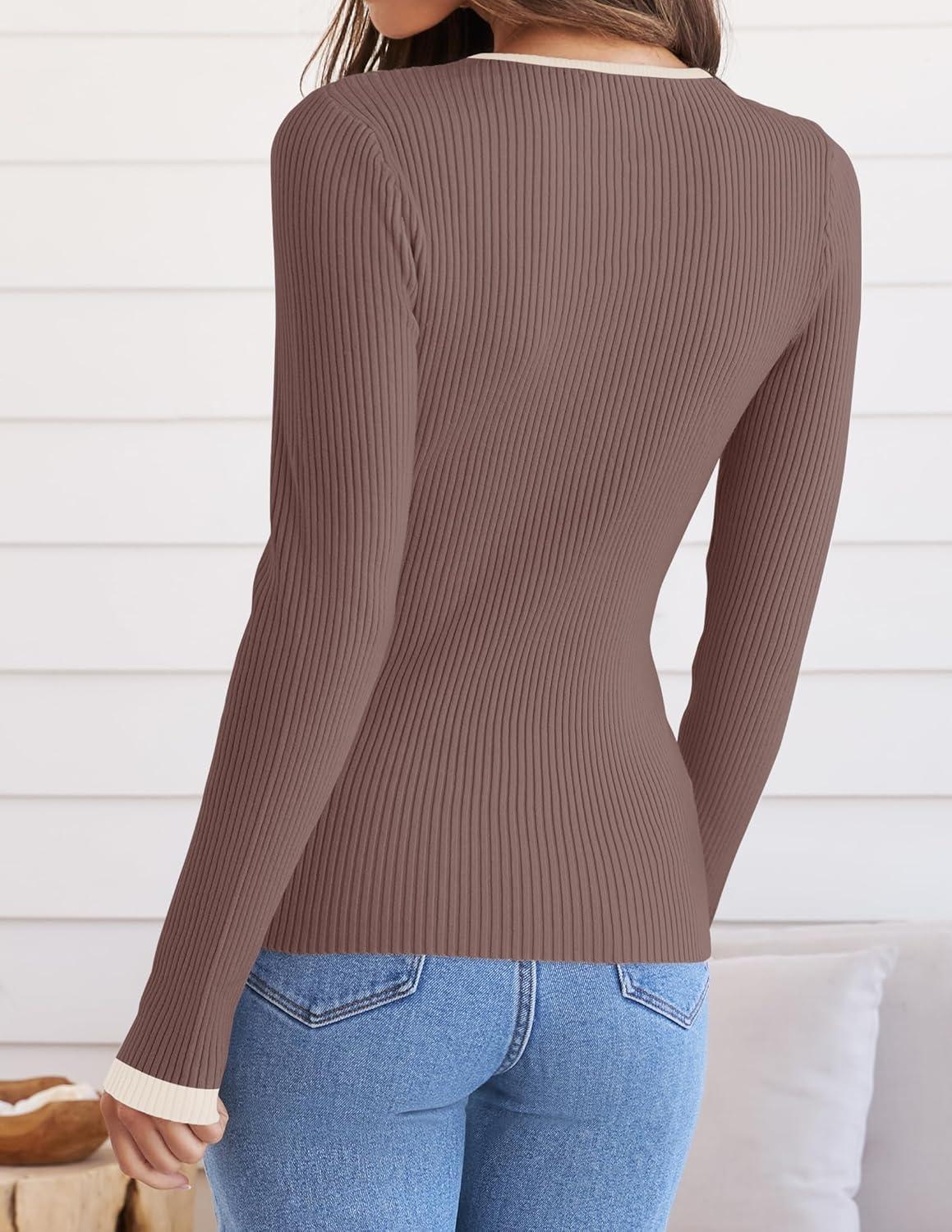 imageZESICA Womens Long Sleeve Crewneck Shirts 2025 Fall Ribbed Knit Sweater Slim Fitted Casual Basic Tee TopsMocha