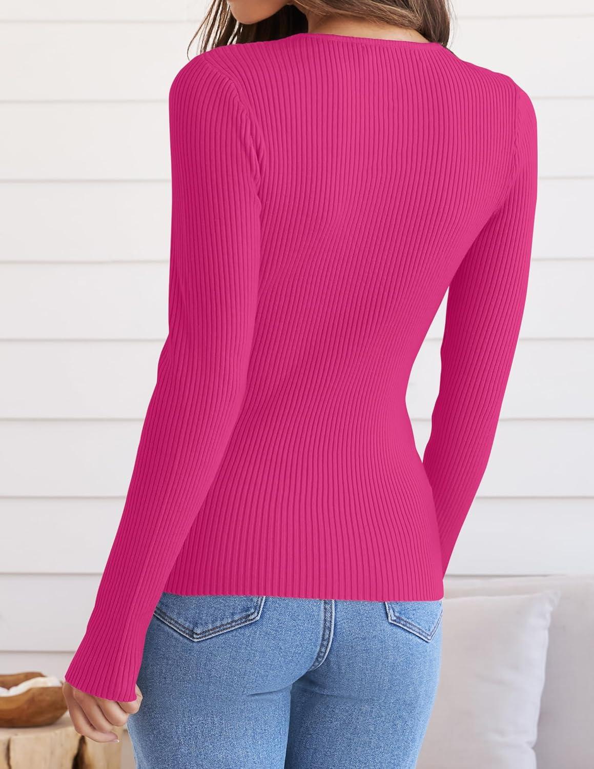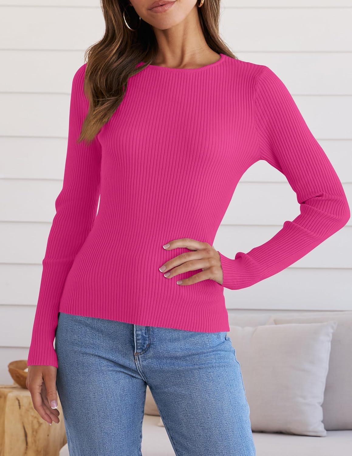 ZESICA Women's Long Sleeve Crewneck Shirts 2025 Fall Ribbed Knit Sweater Slim Fitted Casual Basic Tee Tops(Rose)