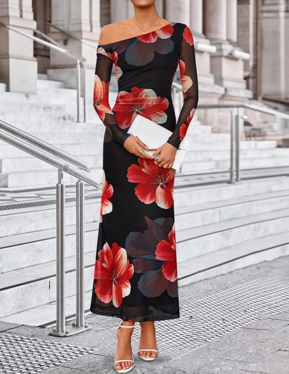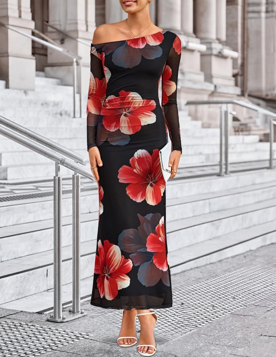 Get your hands on our newest ZESICA Women’s Long Sleeve Floral Maxi Dress 2025 Fall Off Shoulder Bodycon Ruched Mesh Cocktail Wedding Guest Dresses(Black) and enjoy a limited-time discount offer.