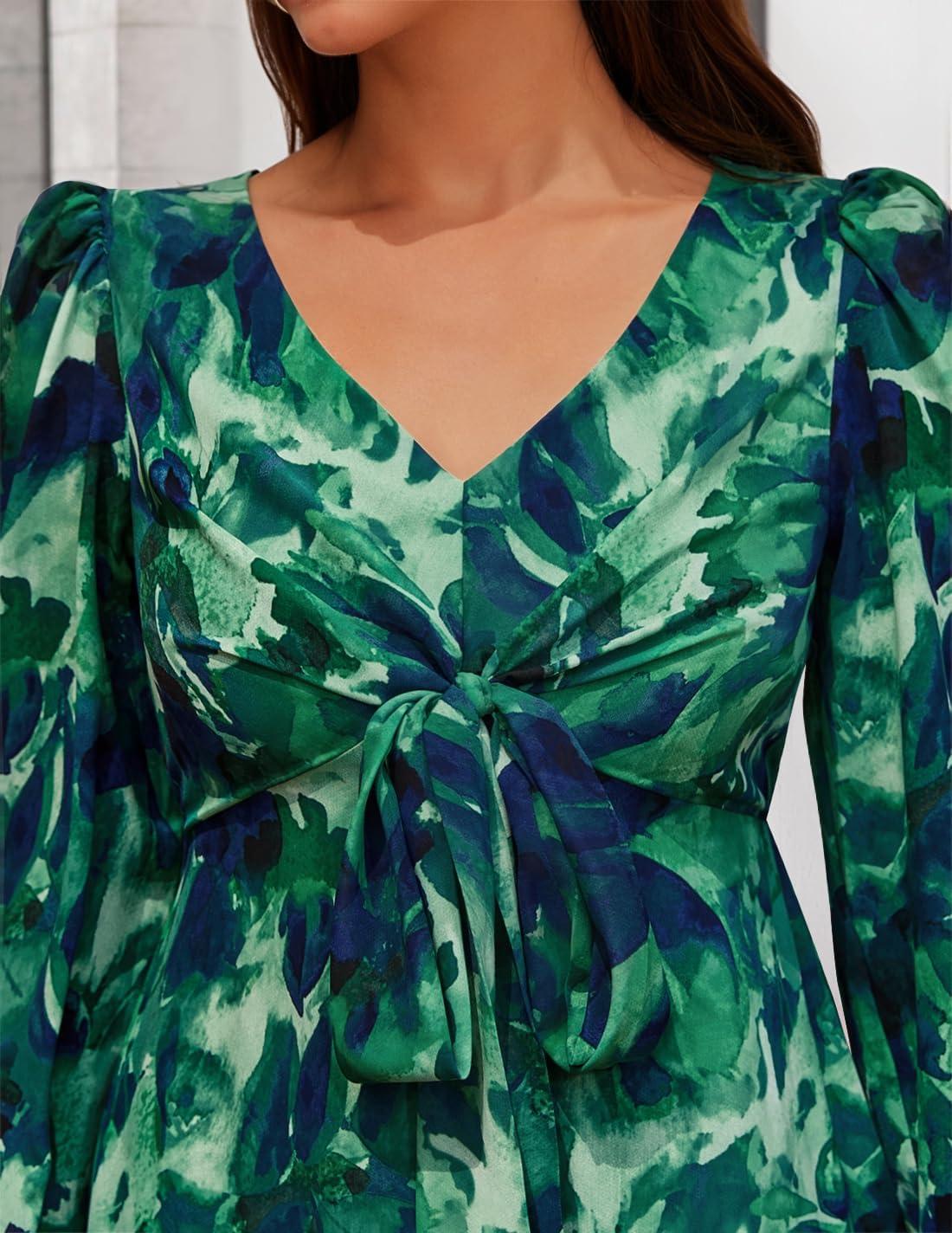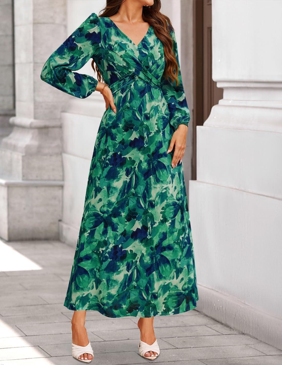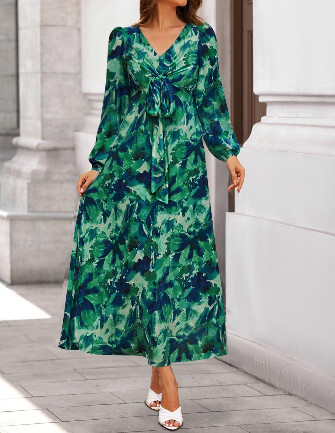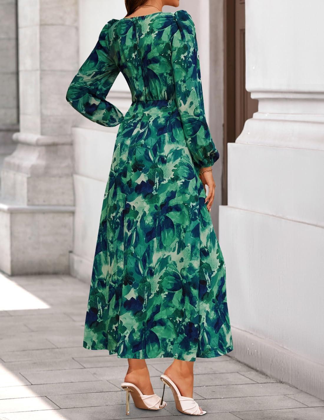 ZESICA Women’s Long Sleeve Midi Dresses 2025 Fall Square Neck Hight Wasit A Line Flowy Wedding Cocktail Party Dress(Green)