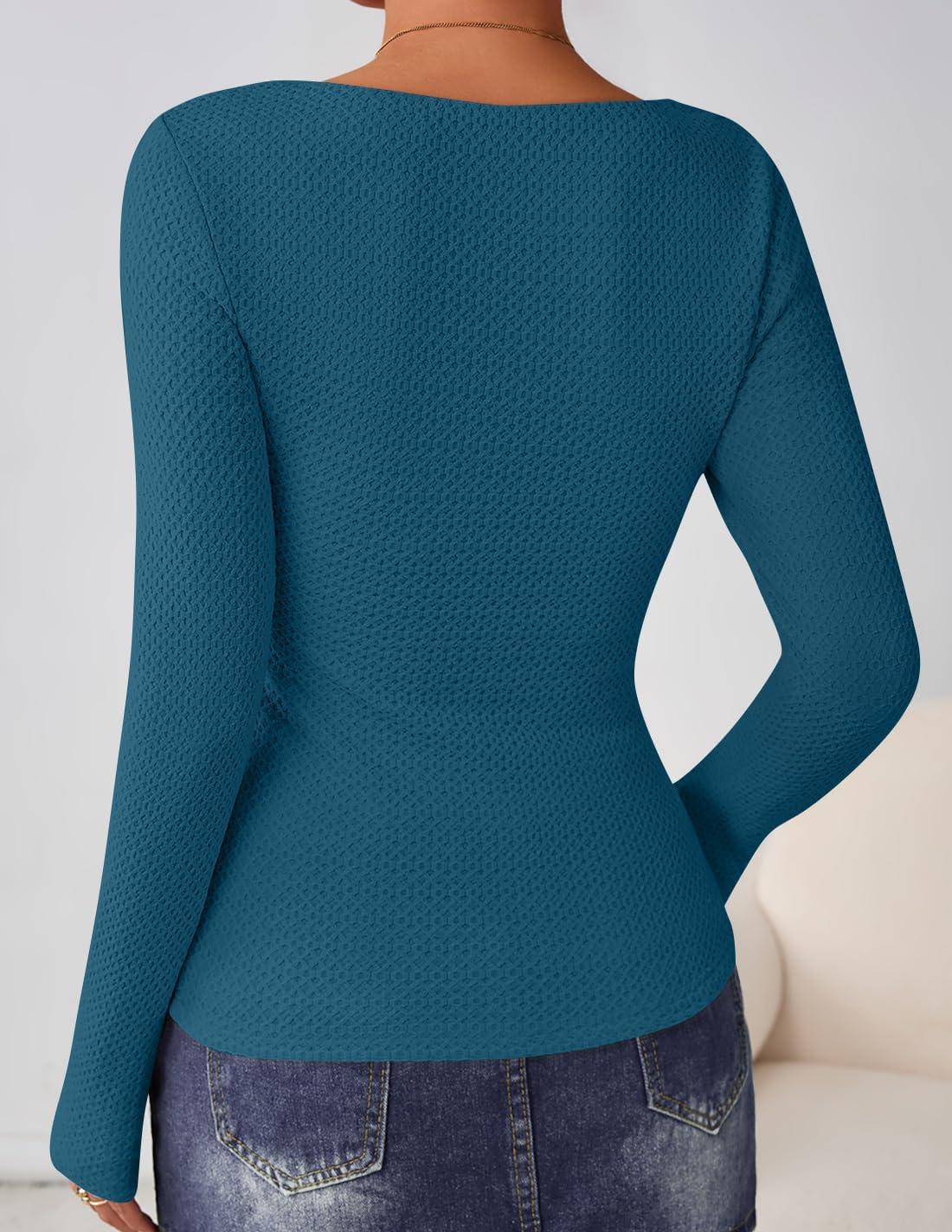 ZESICA Women's Long Sleeve Shirts 2025 Fall Fashion Square Neck Slim Fit Basic Going Out Tops Trendy Outfits(Teal)
