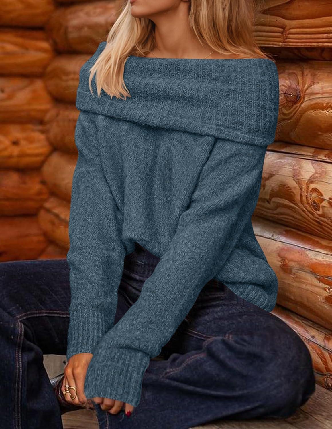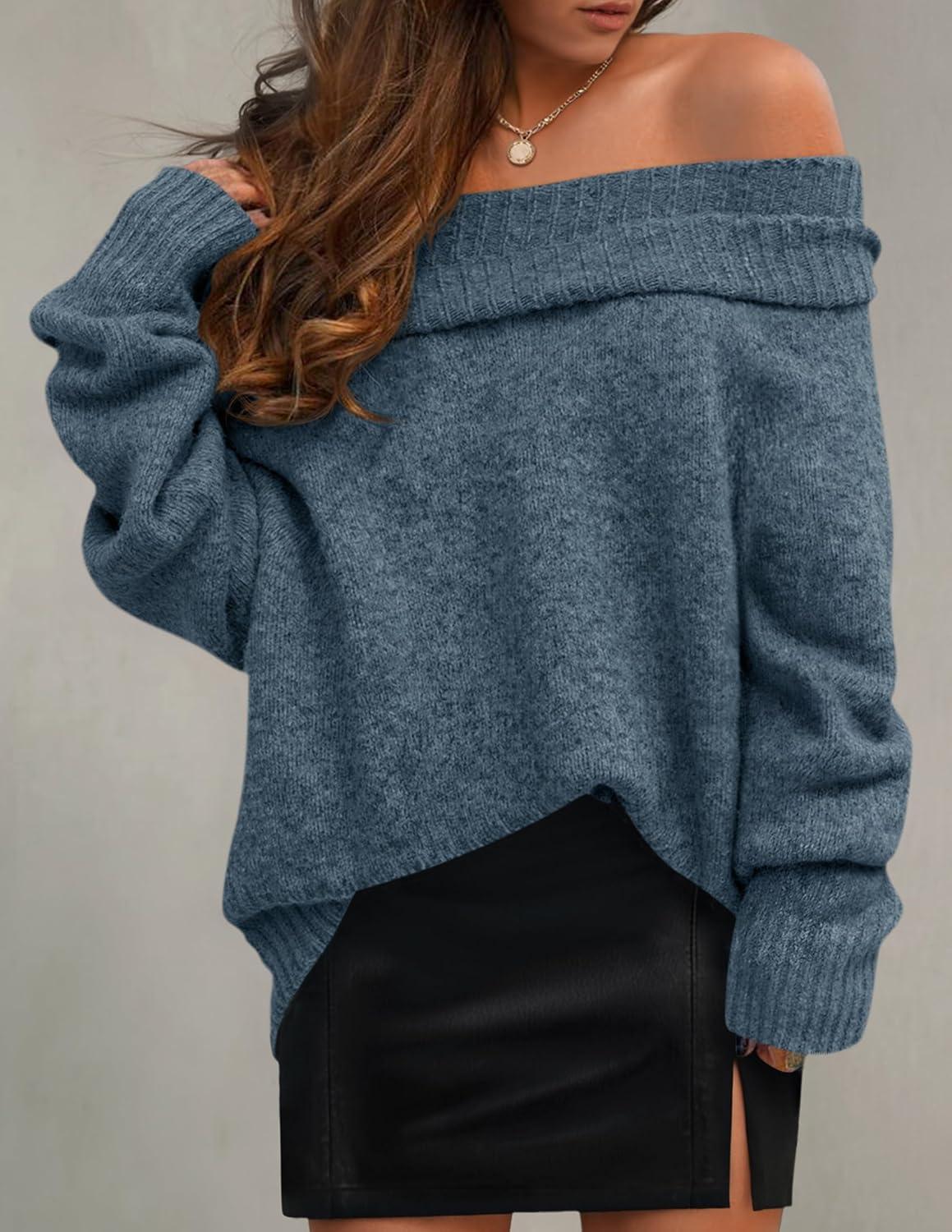 ZESICA Women’s Off The Shoulder Fall Sweaters Oversized Long Sleeve Pullover Tops 2025 Fashion Outfit Clothes(Darkblue)