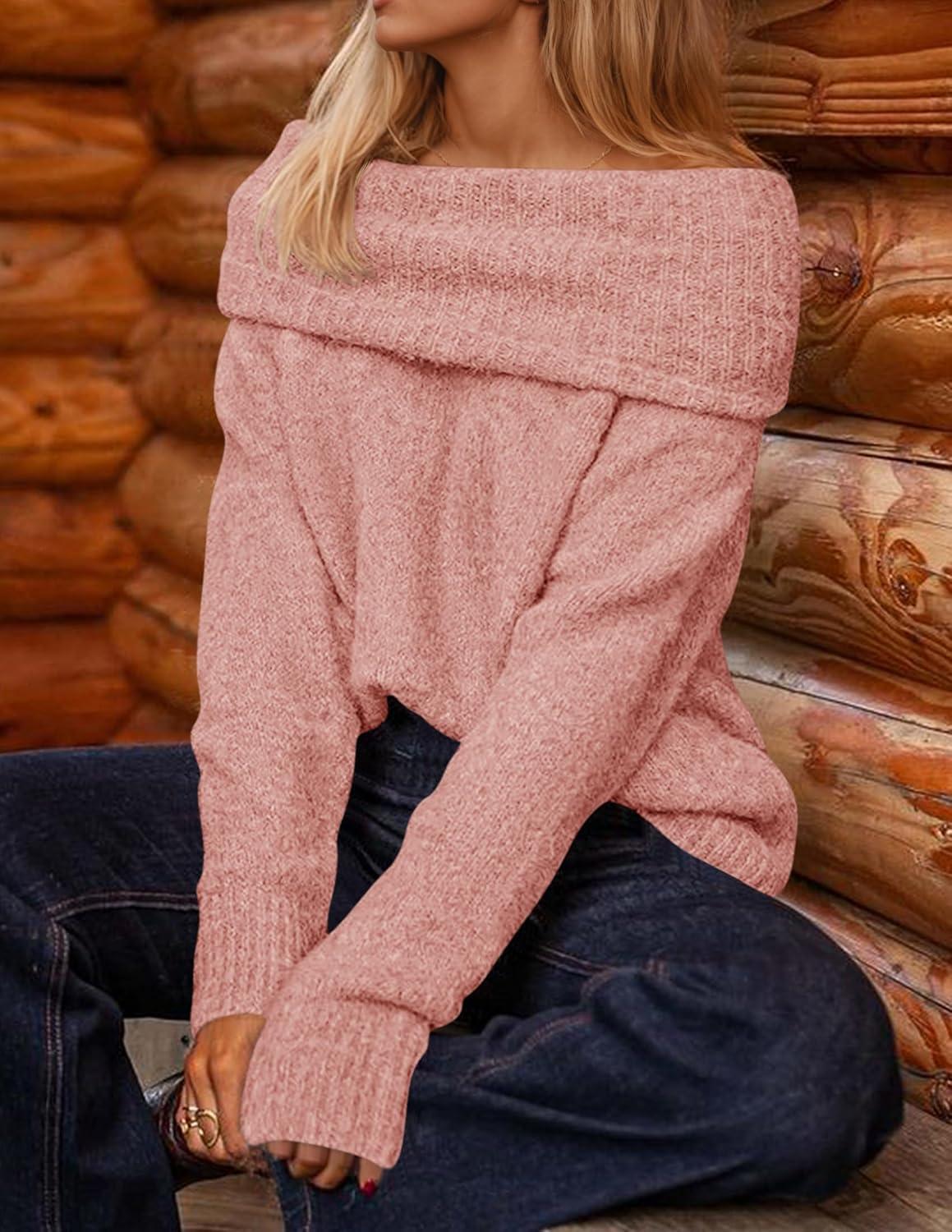 ZESICA Women’s Off The Shoulder Fall Sweaters Oversized Long Sleeve Pullover Tops 2025 Fashion Outfit Clothes(Pink)