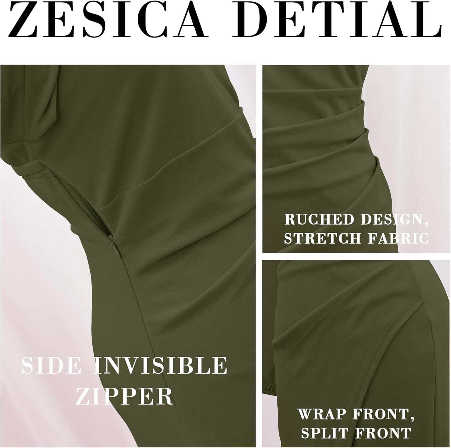 ZESICA Women’s One Shoulder Long Sleeve Cocktail Dress Sexy High Slit Ruched Bodycon Wedding Guest Maxi Dresses(Armygreen)