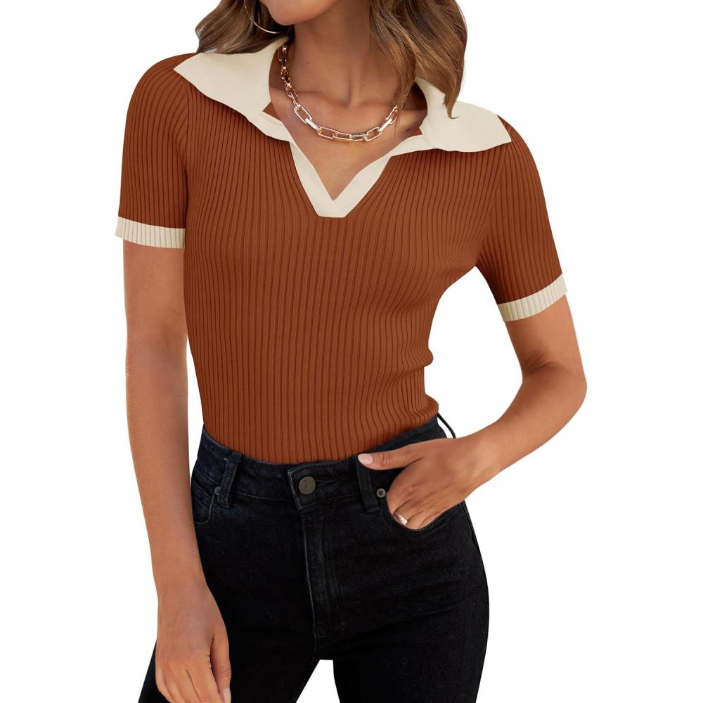 Be the first to review “ZESICA Women’s Short Sleeve V Neck T Shirts 2026 Summer Ribbed Knit Slim Fitted Basic Solid Color Tee Tops(Rust)”