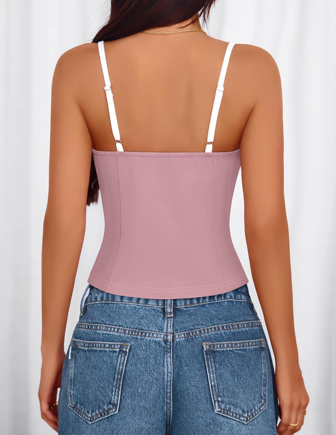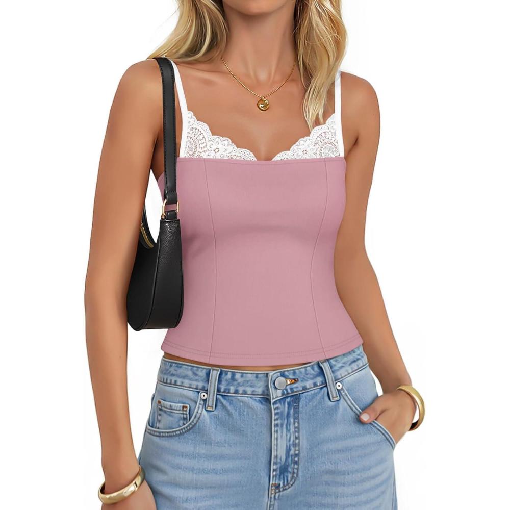 ZESICA Women’s Sleeveless Lace Camisole Tops Summer 2026 Spaghetti Strap Tank Top Y2k Sexy Going Out Trendy Shirts(Pink)