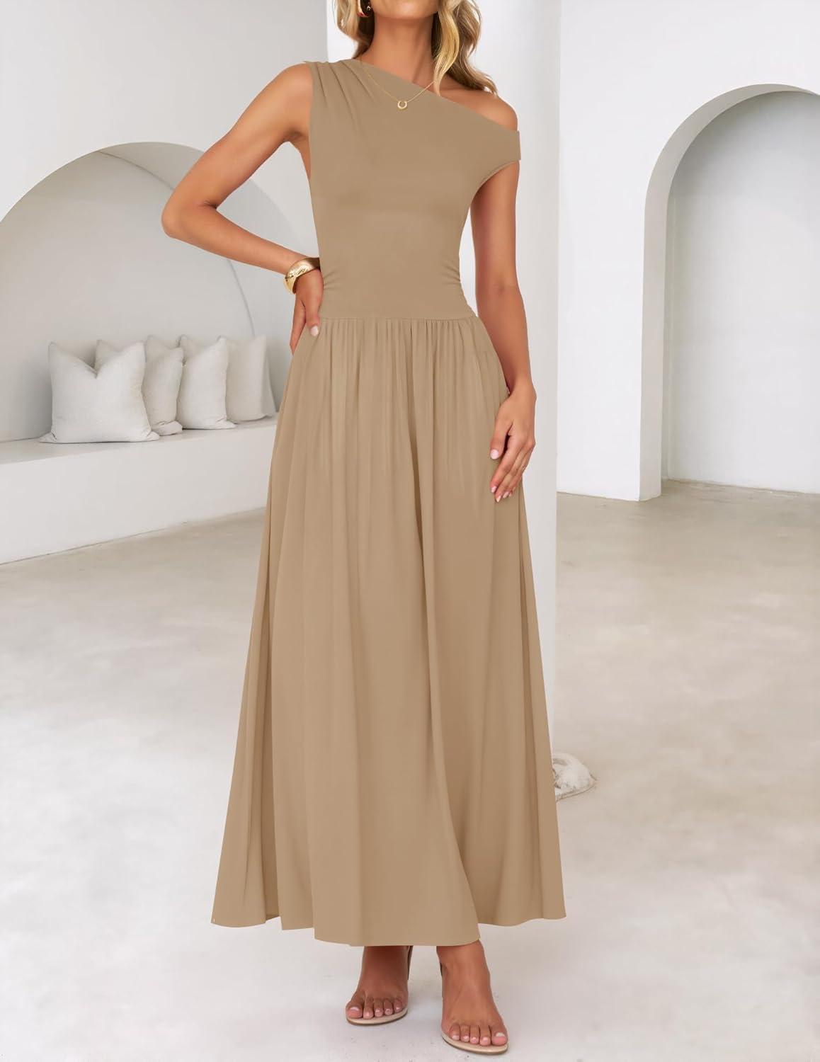 Get up to 50% off on ZESICA Women’s Summer 2025 Sleeveless Maxi Dress One Shoulder Casual Slim Swing Pleated Dresses with Pockets(Lightkhaki) styles during our spring sale event.