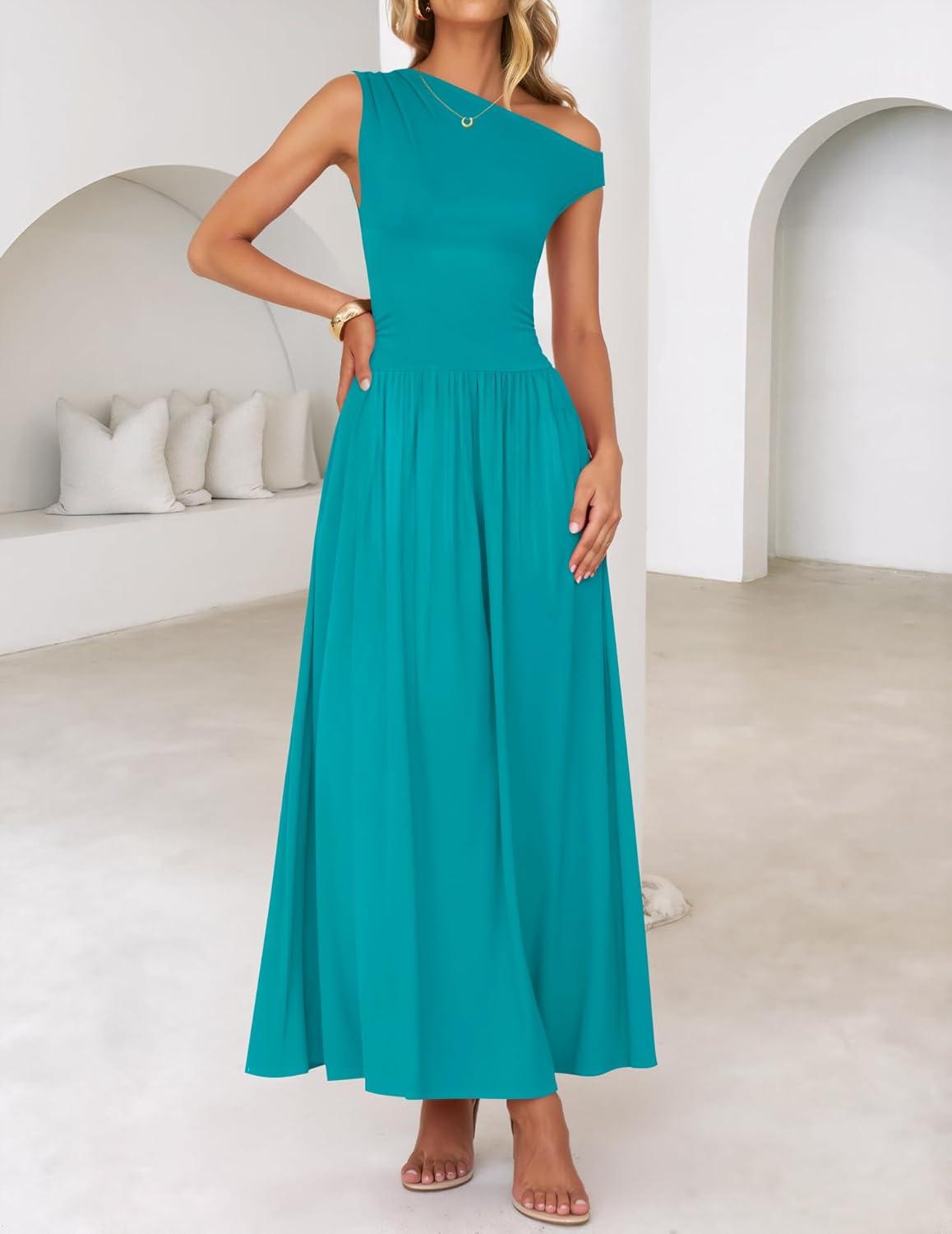 Get your hands on our newest ZESICA Women’s Summer 2025 Sleeveless Maxi Dress One Shoulder Casual Slim Swing Pleated Dresses with Pockets(Teal) and enjoy a limited-time discount offer.