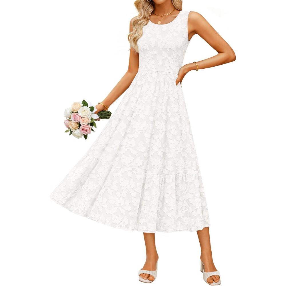 ZESICA Women‘s Summer Boho Floral Midi Dress 2026 Sleeveless Beach Vacation Dresses Casual Flowy Sundress(White)