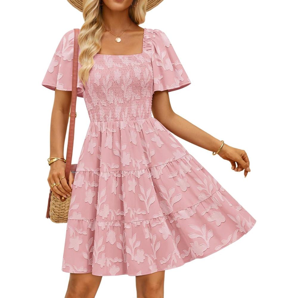 Be the first to review “ZESICA Women’s Summer Boho Floral Mini Dress 2026 Casual Short Sleeve Square Neck Swing Beach Vacation Sundress(Pink)”