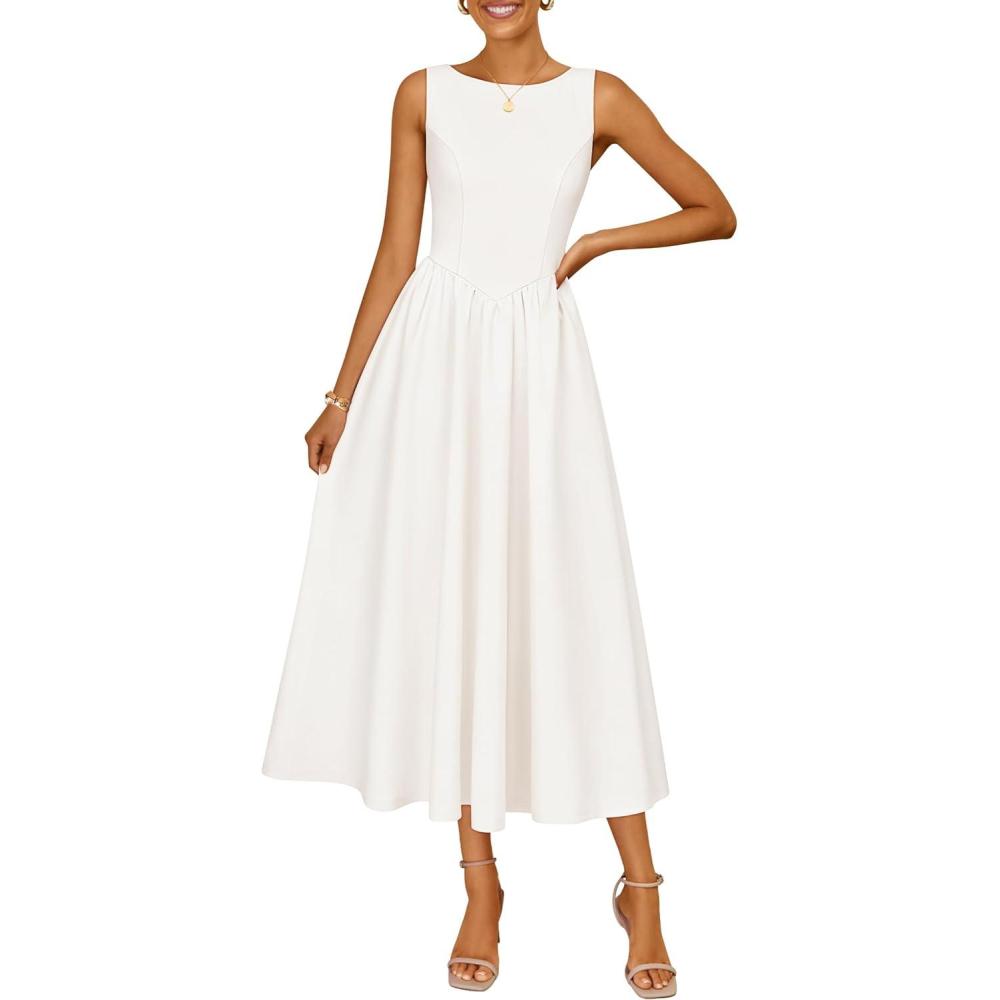 Be the first to review “ZESICA Women’s Summer Elegant Sleeveless Midi Dresses 2026 Wedding Guest Cocktail Party Crewnenck Flowy A Line Long Dress(White)” Cancel reply