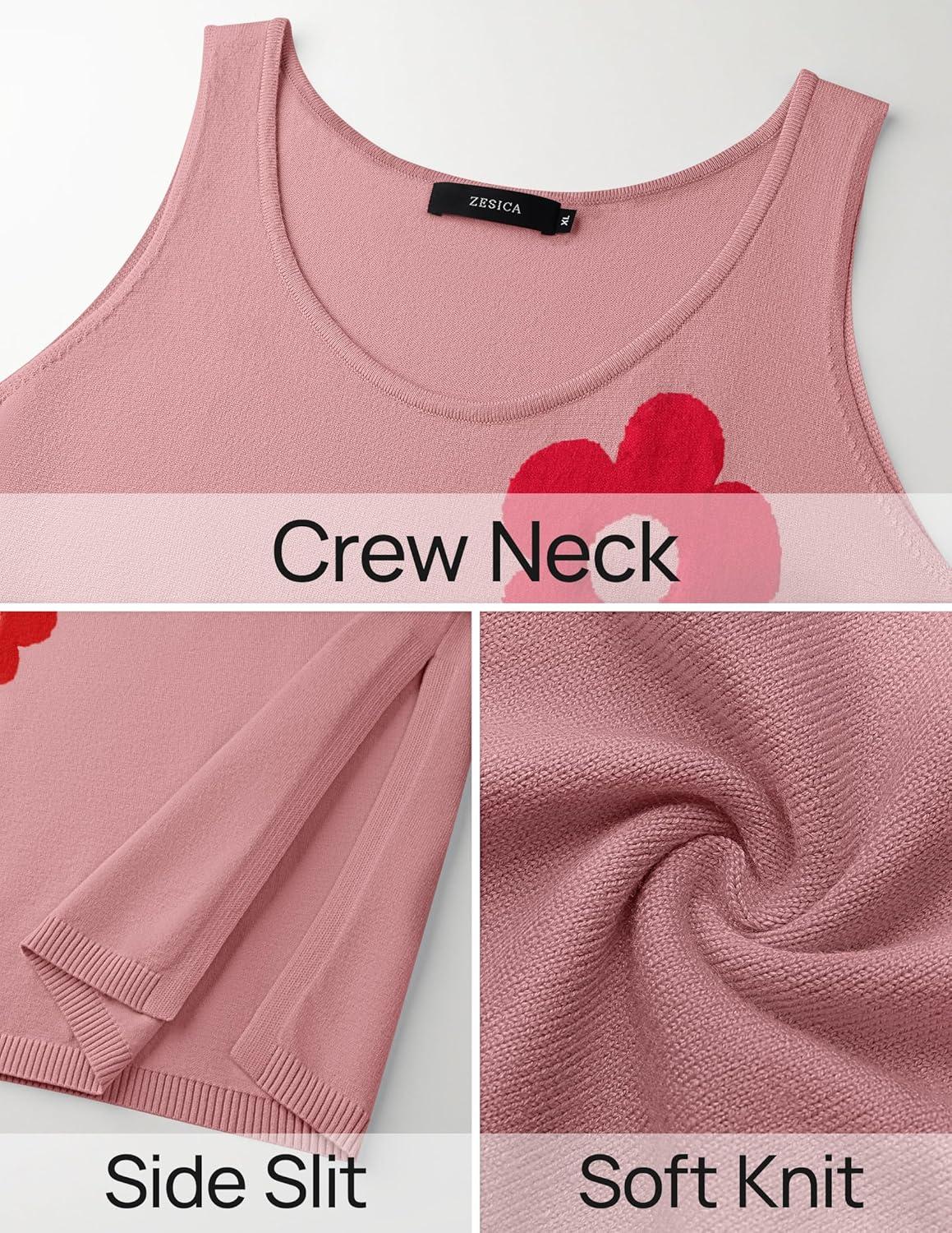 ZESICA Women’s Summer Floral Knit Bodycon Midi Dress 2025 Sleeveless Crew Neck Color Block Long Beach Party Dresses(Dustypink)