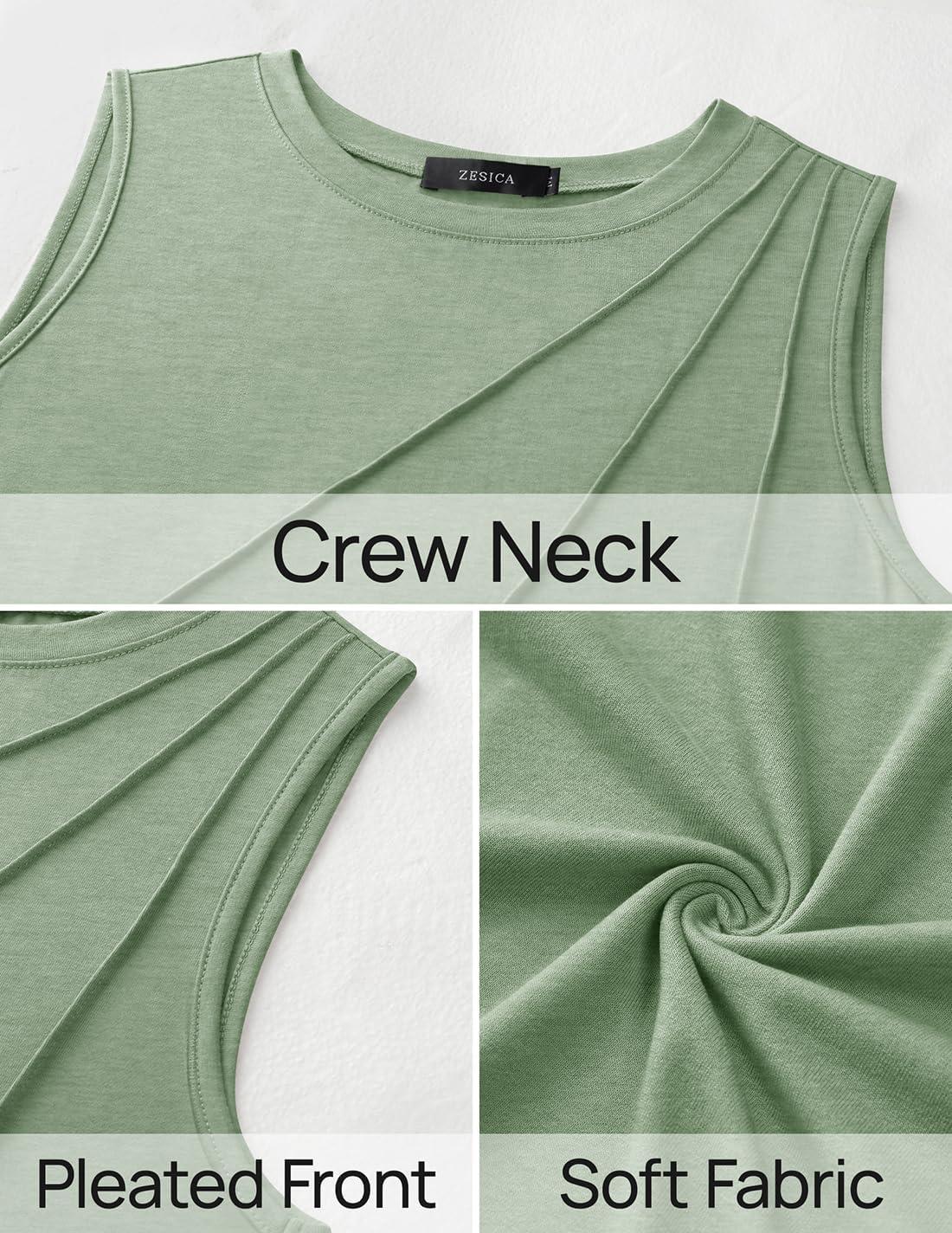ZESICA Women’s Summer Pleated Tank Top Sleeveless Crewneck Business Casual Loose Tops Shirts 2025 Fashion Clothes Outfits(Lightgreen)