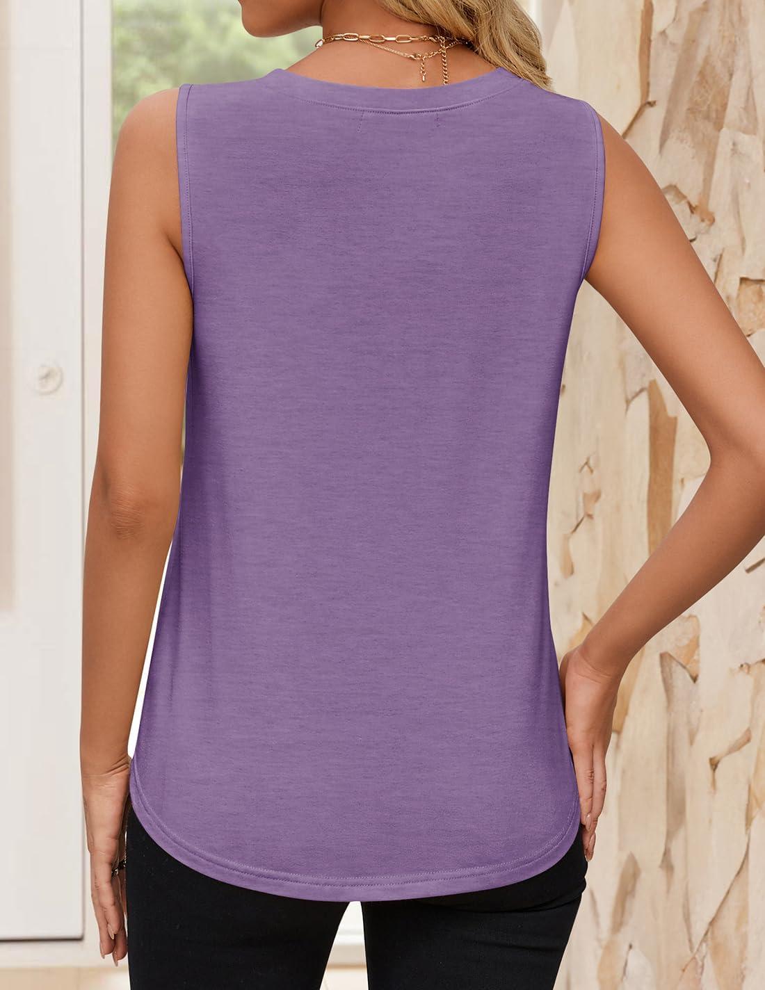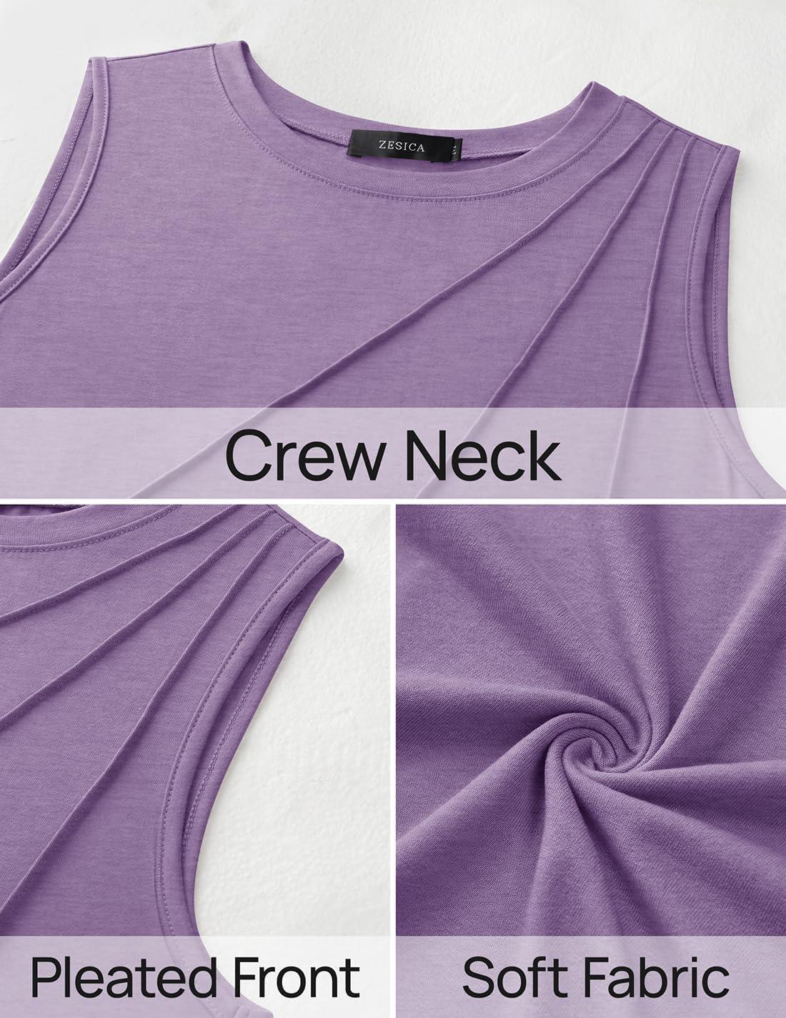 ZESICA Women’s Summer Pleated Tank Top Sleeveless Crewneck Business Casual Loose Tops Shirts 2025 Fashion Clothes Outfits(Purple)