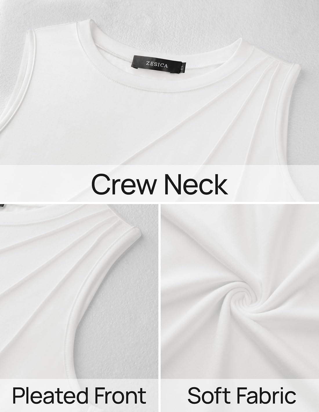 imageZESICA Womens Summer Pleated Tank Top Sleeveless Crewneck Business Casual Loose Tops Shirts 2025 Fashion Clothes OutfitsWhite