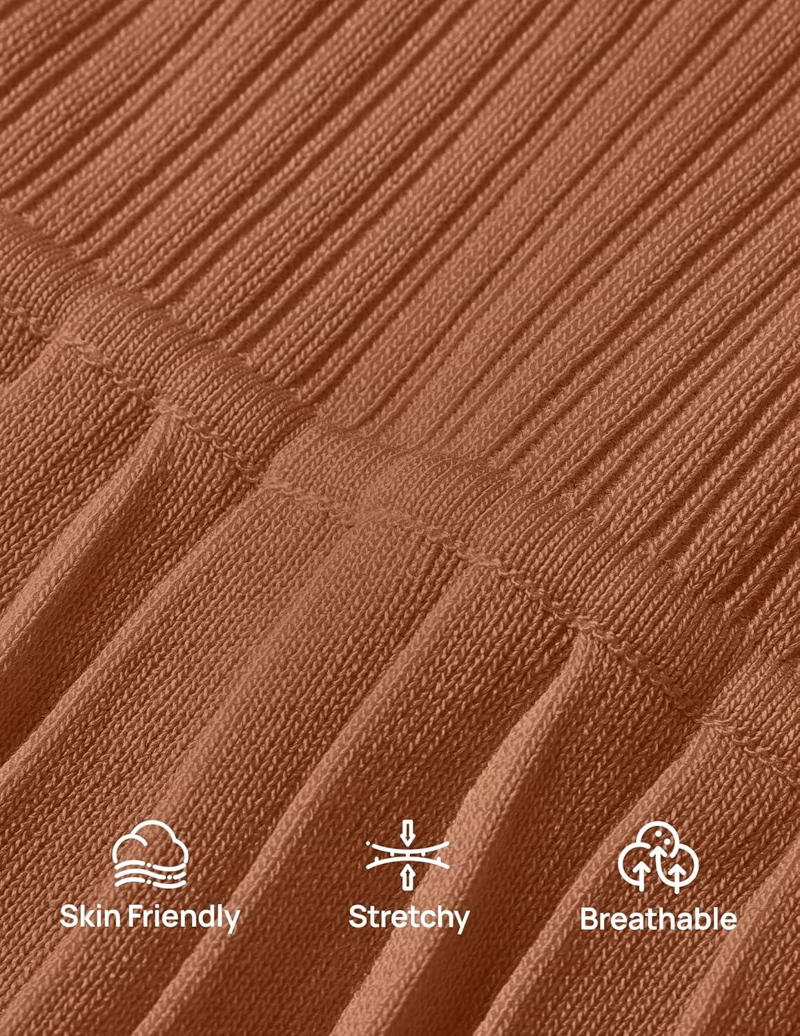 ZESICA Women’s Summer Sleeveless Mini Dress 2025 Crewneck Knit A Line Pleated Swing Casual Basic Short Dress(Caramel)