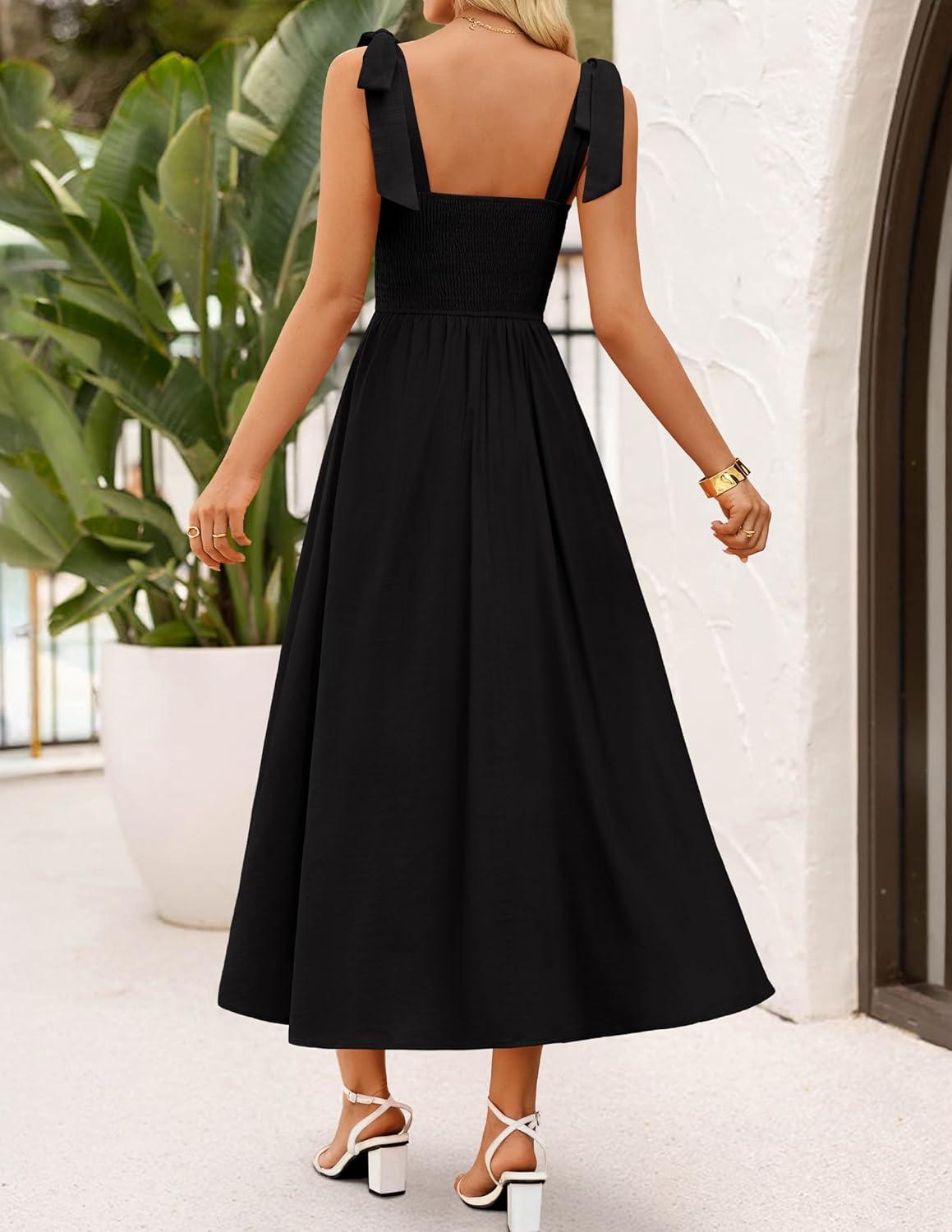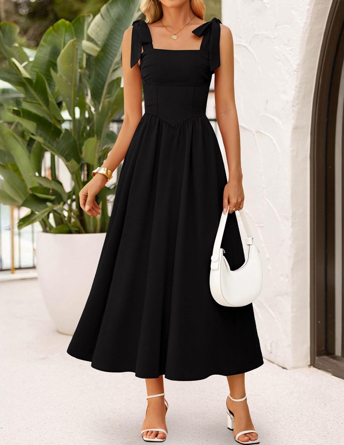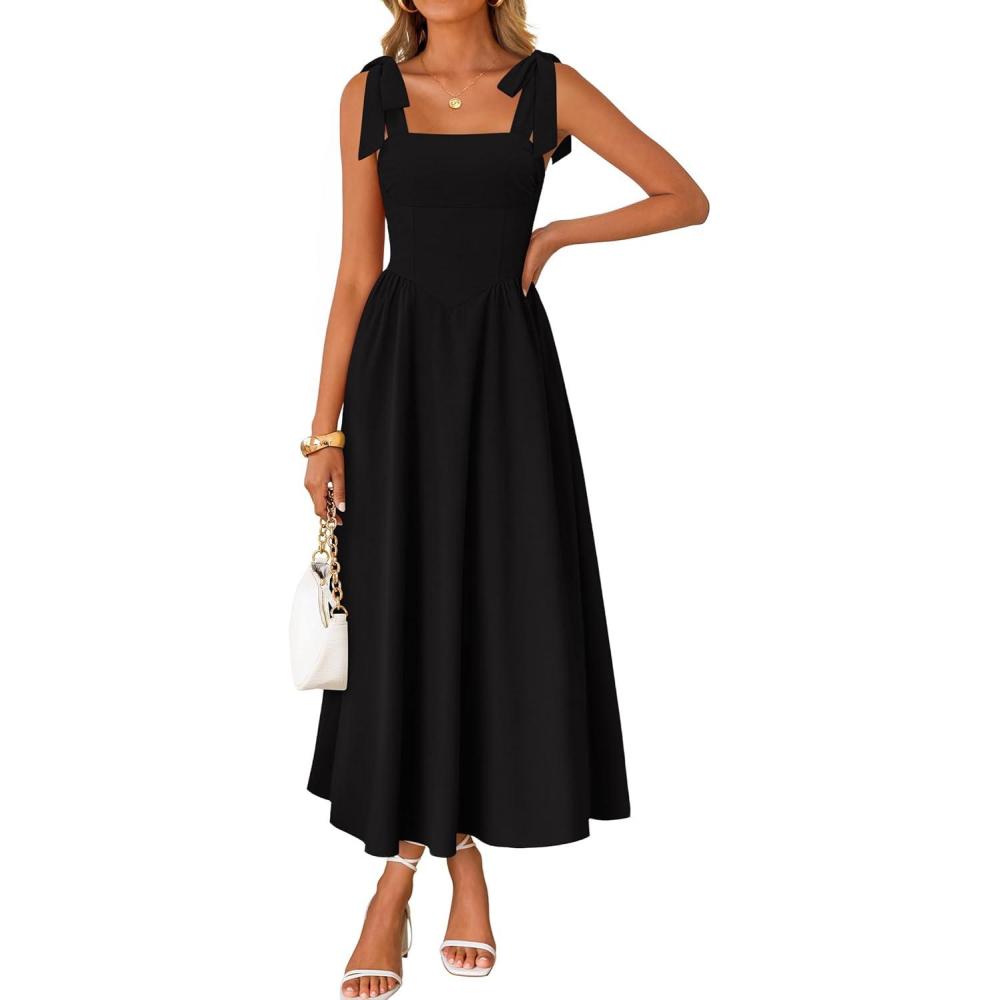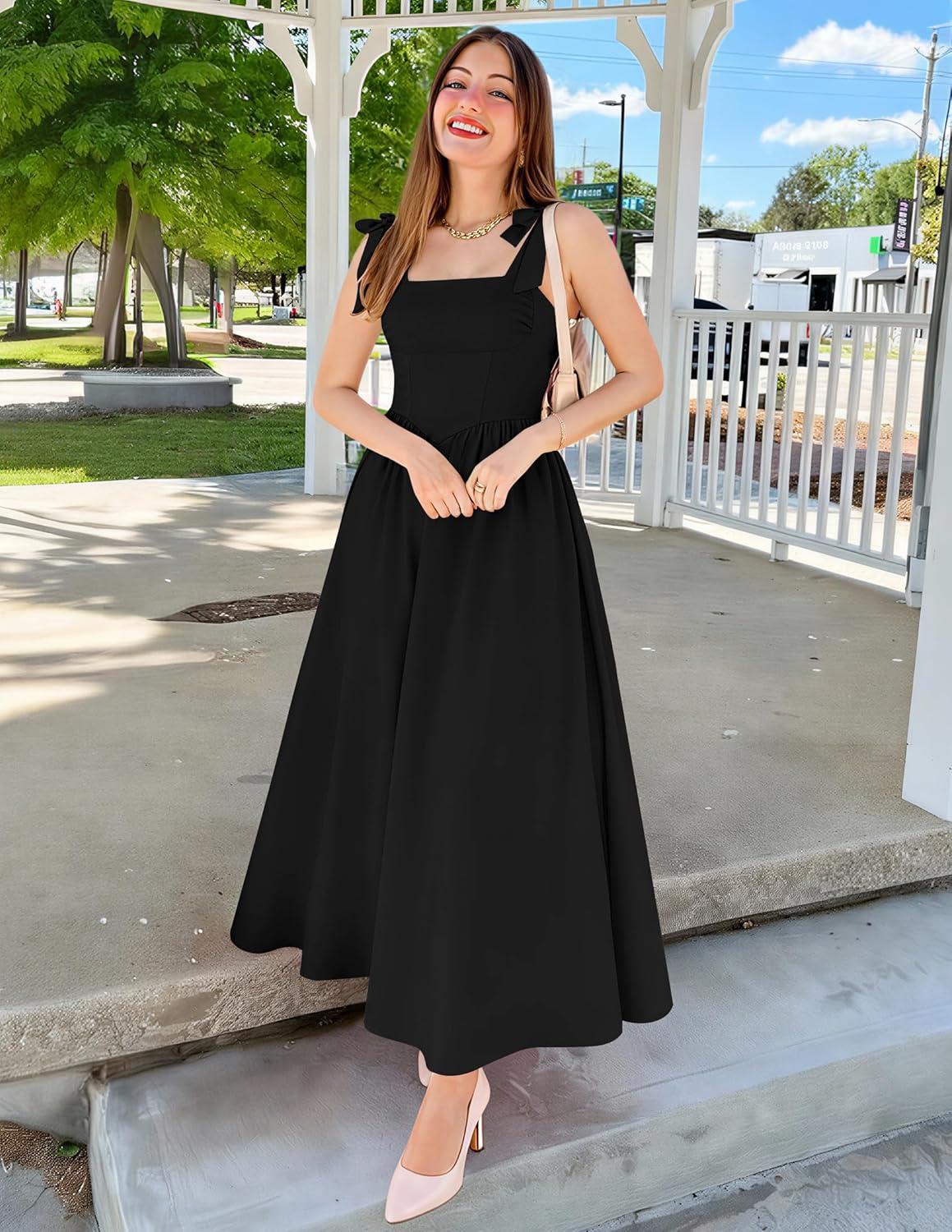 ZESICA Women’s Summer Spaghetti Strap Maxi Dress 2026 Tie Shoulder Square Neck Flowy Wedding Guest Party Beach Long Dresses(Black)