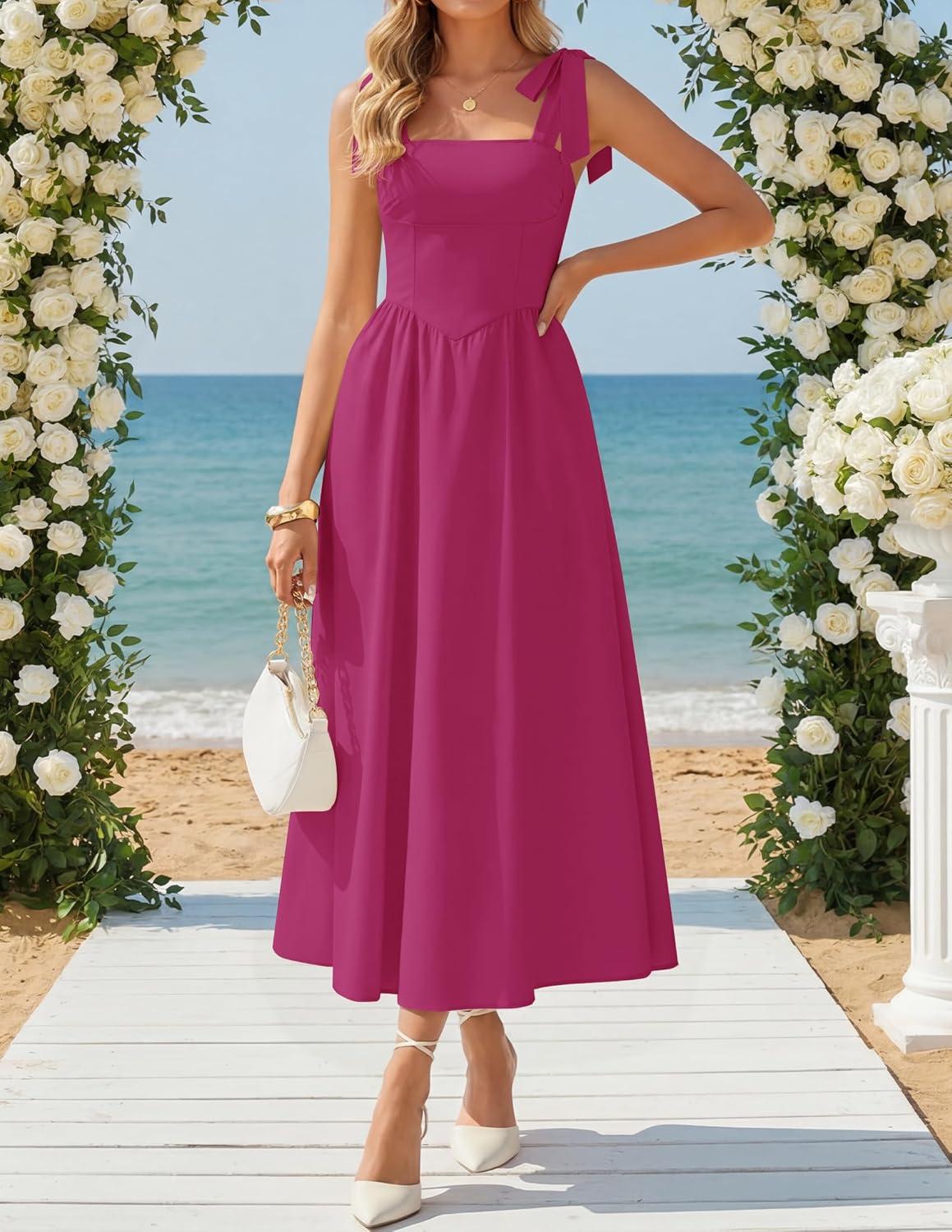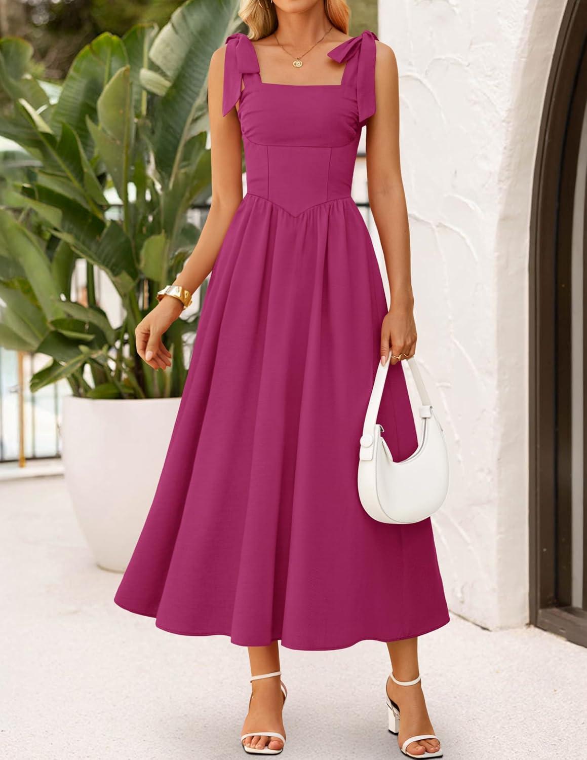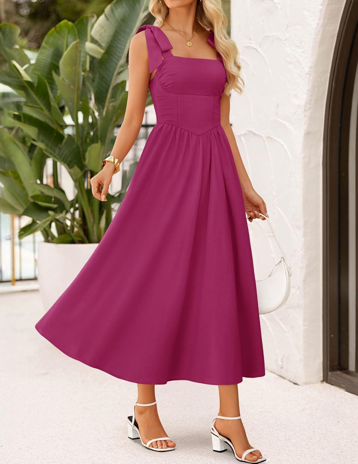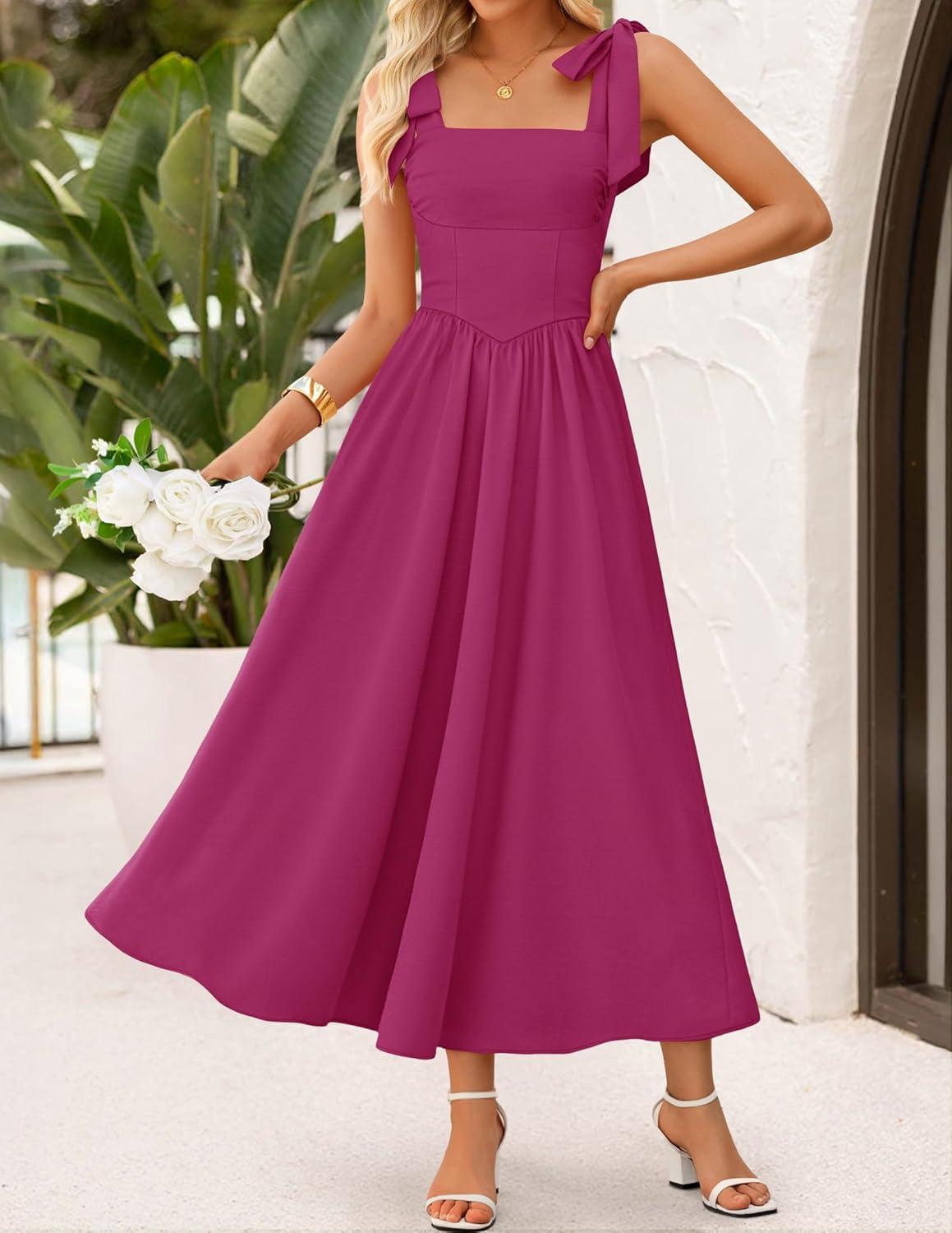 ZESICA Women’s Summer Spaghetti Strap Maxi Dress 2026 Tie Shoulder Square Neck Flowy Wedding Guest Party Beach Long Dresses(Eggplant)