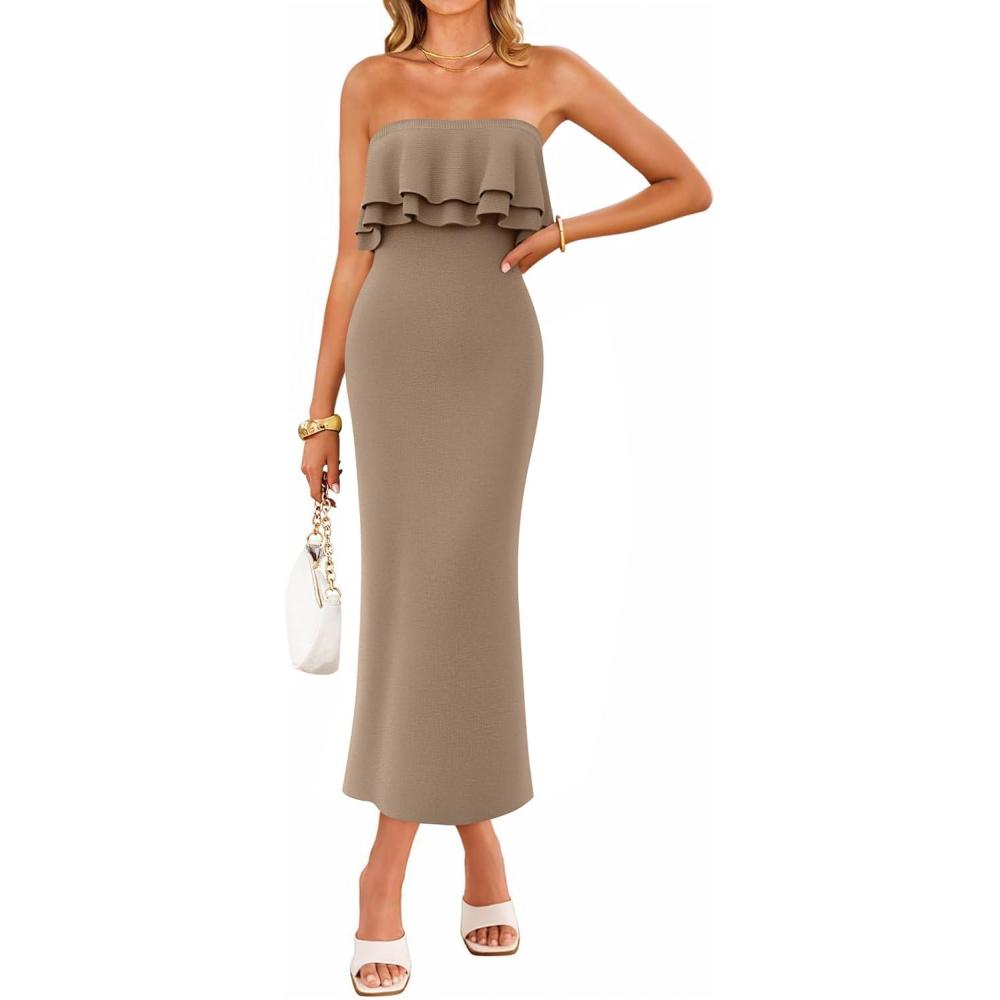 The ZESICA Women's Summer Strapless Bodycon Midi Dress is meticulously designed to be the most reached for piece in your 2026 wardrobe. We've fused the body hugging allure of a classic bodycon dress with the unexpected comfort and texture of a soft, ribbed knit, creating a versatile look that effortlessly transitions from a sunny beach day to an elegant cocktail party. This isn't just another dress; it's your secret weapon for looking impeccably stylish with zero effort.At the heart of this dress is a commitment to all day comfort without compromising on a sexy, sophisticated silhouette. Crafted from our premium, high stretch ribbed knit fabric, this dress moves with you, allowing you to dance, sit, and mingle with absolute ease. The fabric is soft against the skin, provides a comfortable fit without being restrictive, and is not see-through, giving you complete confidence from every angle. The slim fit is designed to accentuate your curves beautifully, creating a flattering silhouette that makes you feel powerful and poised.While this sweater dress offers incredible comfort, it's intentionally designed without pockets or a lining to maintain its sleek, seamless look that won't bunch or add bulk. This ensures the dress lays great against your body, highlighting your natural shape.Every detail of this strapless midi dress has been carefully considered to deliver a high fashion look.We believe that looking and feeling incredible should be easy. This strapless bodycon midi dress is a testament to that belief. It’s more than just a piece of clothing; it's a confidence-builder, a conversation starter, and the foundation for countless unforgettable outfits.