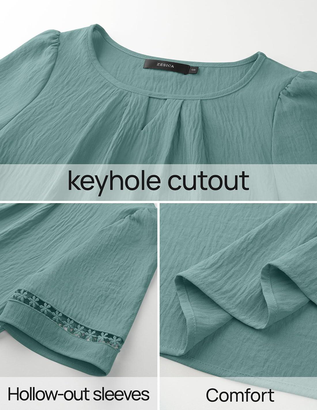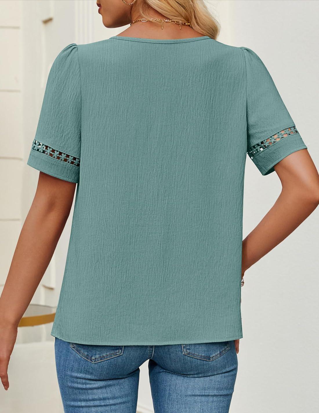 ZESICA Women's Summer Tops Dressy Casual Short Sleeve Blouses Trendy Elegant Shirts(Greygreen)